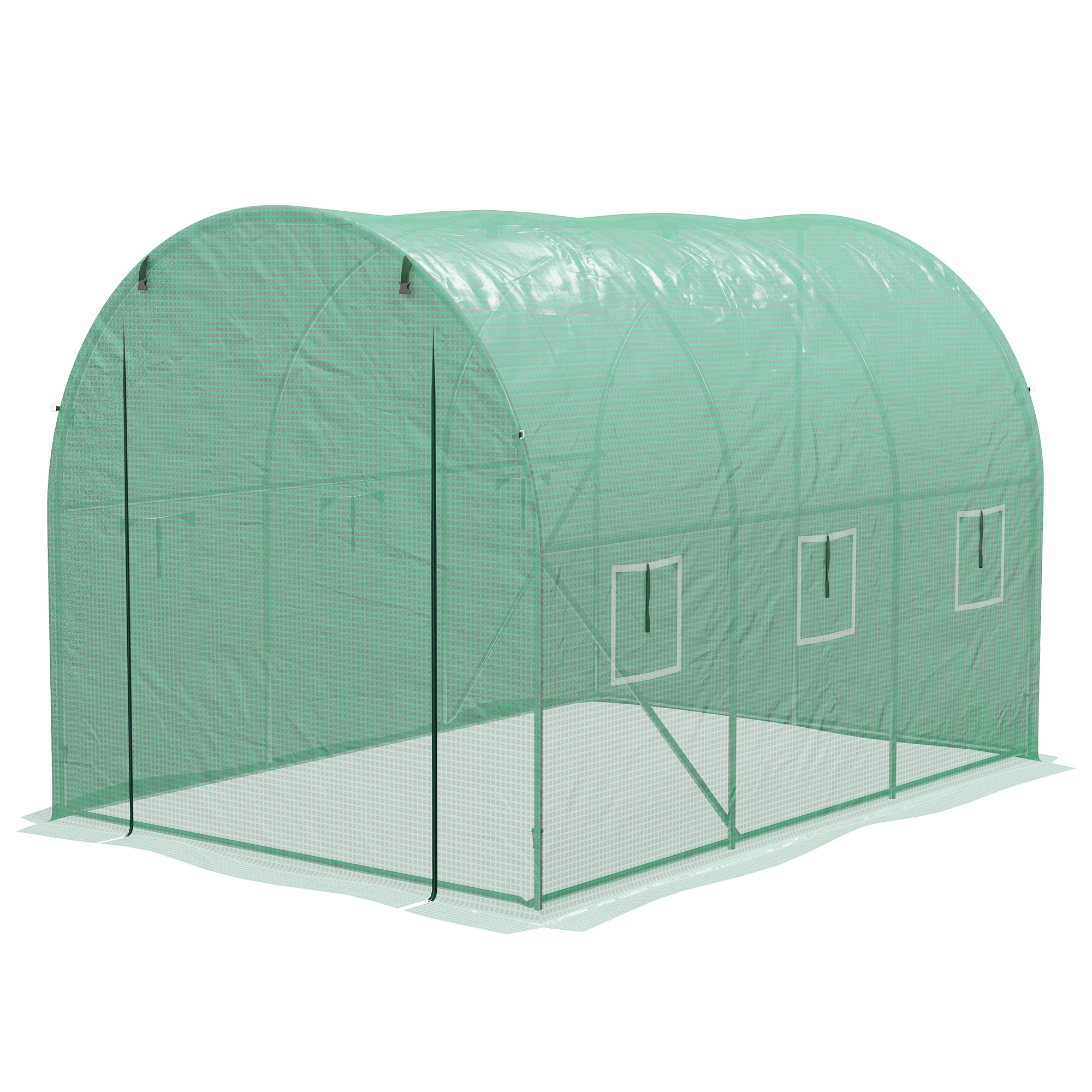 Transform your garden into a haven for growth, thanks to this Outsunny walk-in polytunnel greenhouse. The integrated spray system is easy: simply connect your hose - keeps plants hydrated and happy. The galvanised steel frame and reinforced support bars ensure a strong standing structure, all protected with a plastic cover.