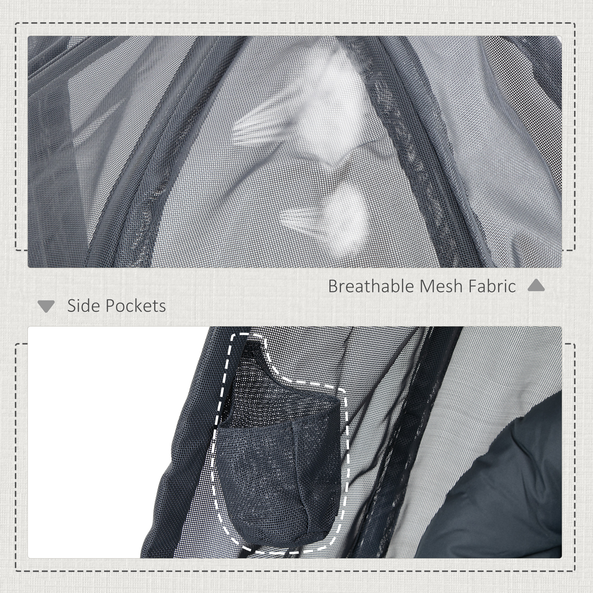 - Breathable mesh basket can be removed from the frame to store