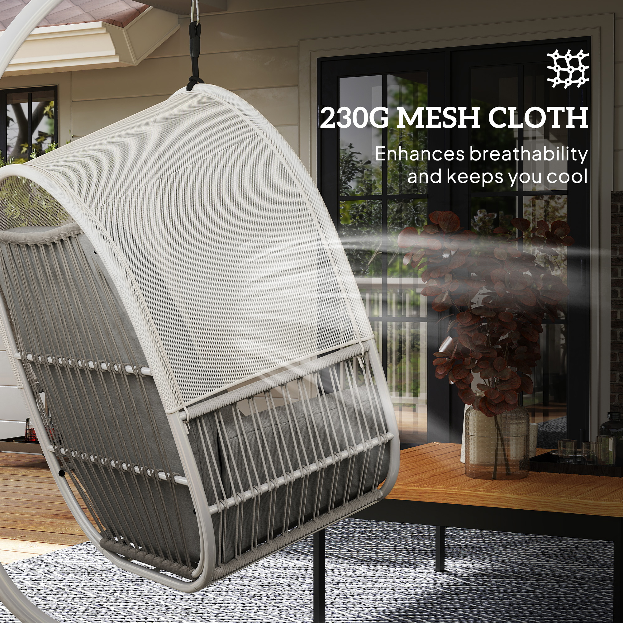 Your own private space to relax outdoors, with this Outsunny egg chair. The spacious seat gives you plenty of room - fitted with a large cushion for all the comfort as you relax; the lumbar pillow supports the lower back. Look to the powder coated steel frame for a strong core, finished with 'X' legs for balance.