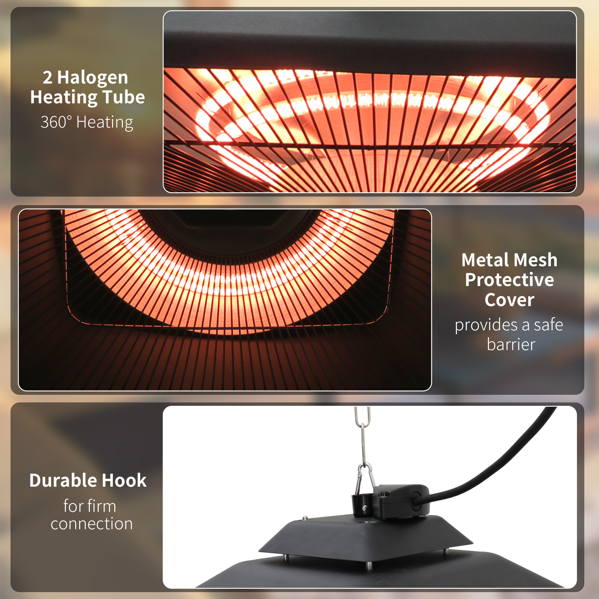 - Provide both heat and light for outdoor living space