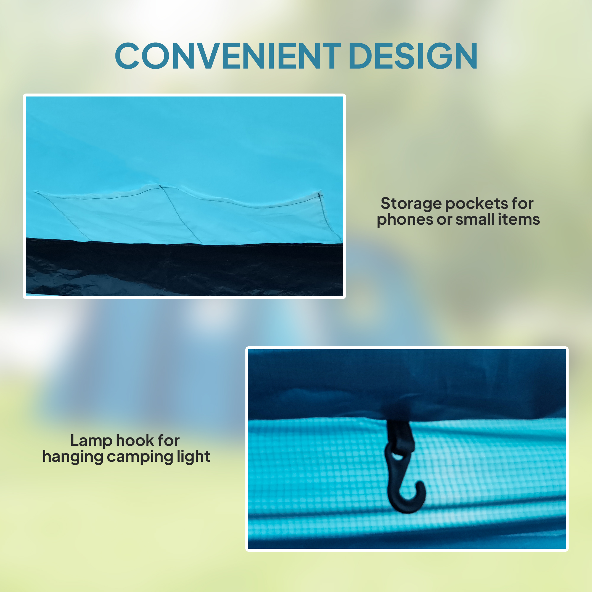 - 210T polyester fabric offers effective waterproofing and UV protection