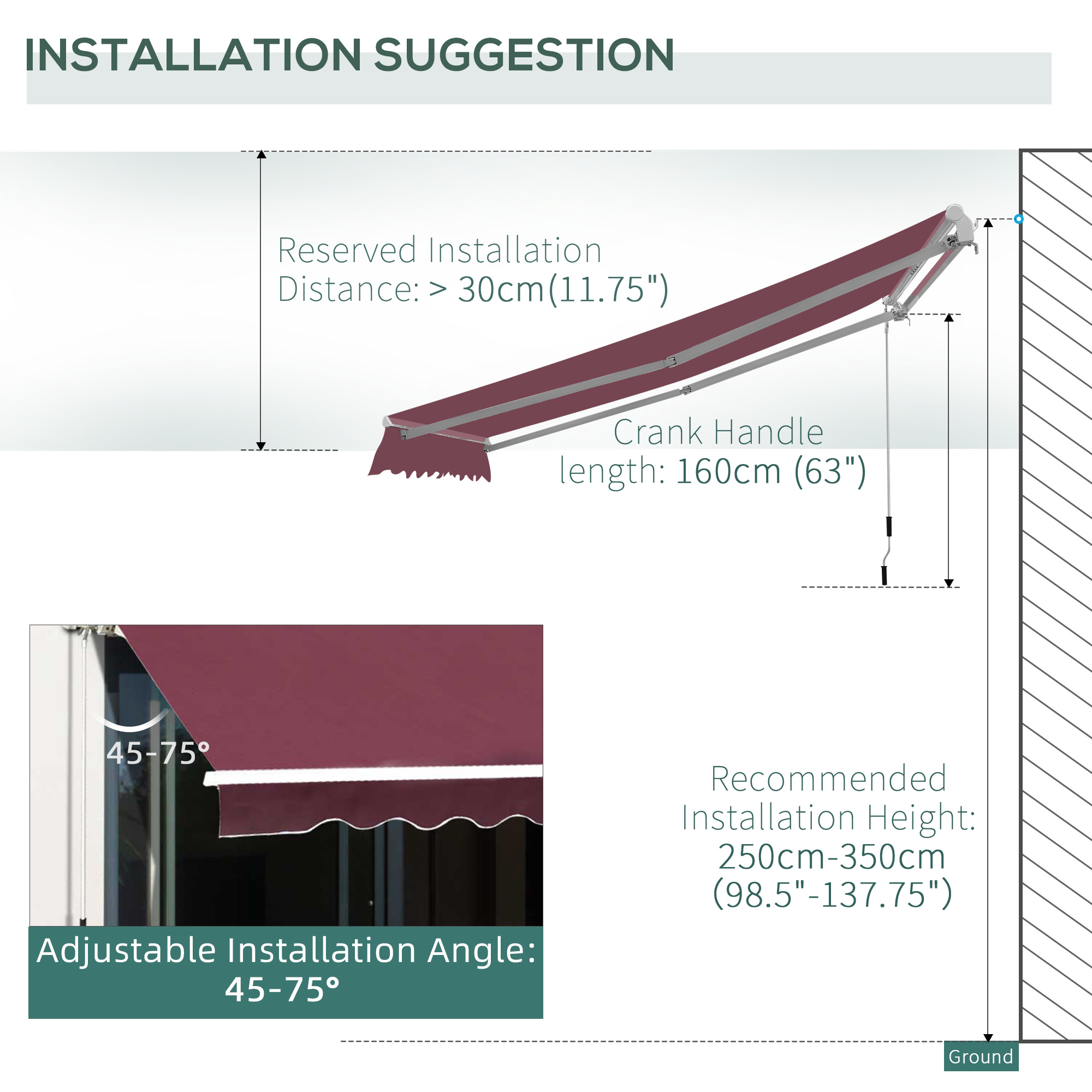 - With chain drive and hand crank which make easy to project/retract the awning.