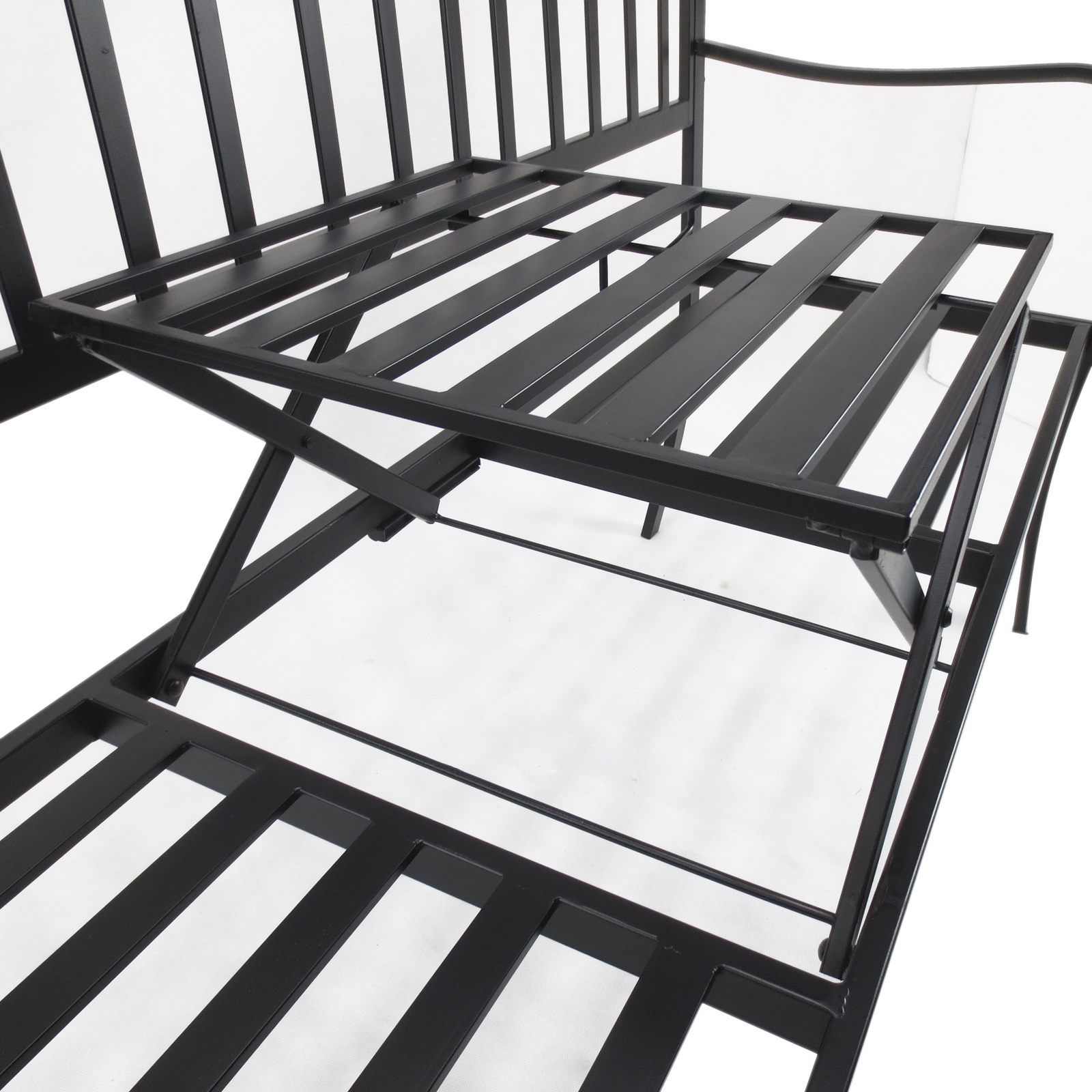 A timeless piece with a modern touch, this bench from Outsunny is a fantastic addition for those searching for something a little bit different for the garden and outdoor area. Made from a rust resistant, powder coated metal frame for strength and stability, it features a handy pull-up middle table, allowing convenient placement of food, drinks, books, magazines etc. Crafted into a slatted design for comfort, excellent air circulation and non-water build up when it rains, this bench is ideal for enjoying a lunch in the sun with a friend.