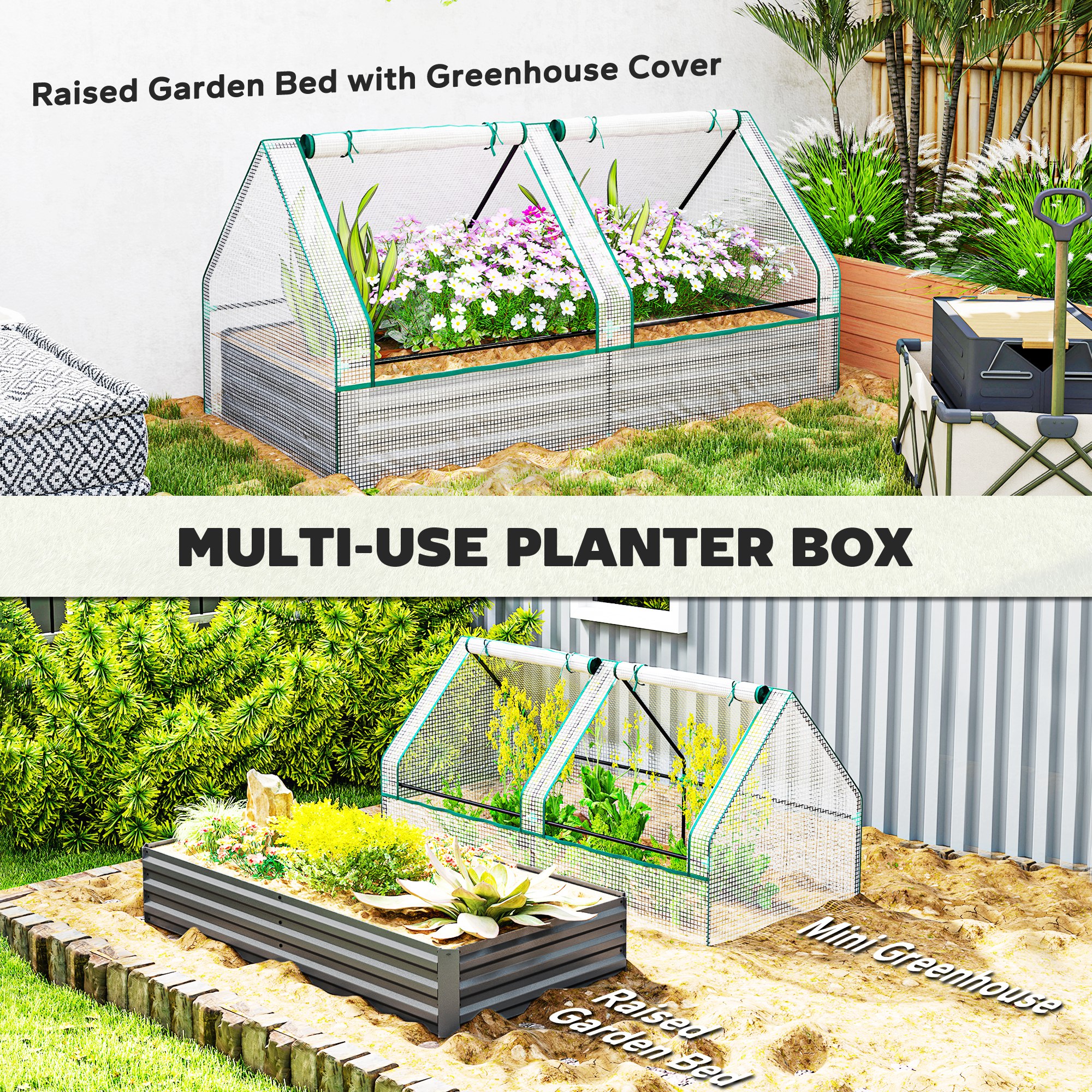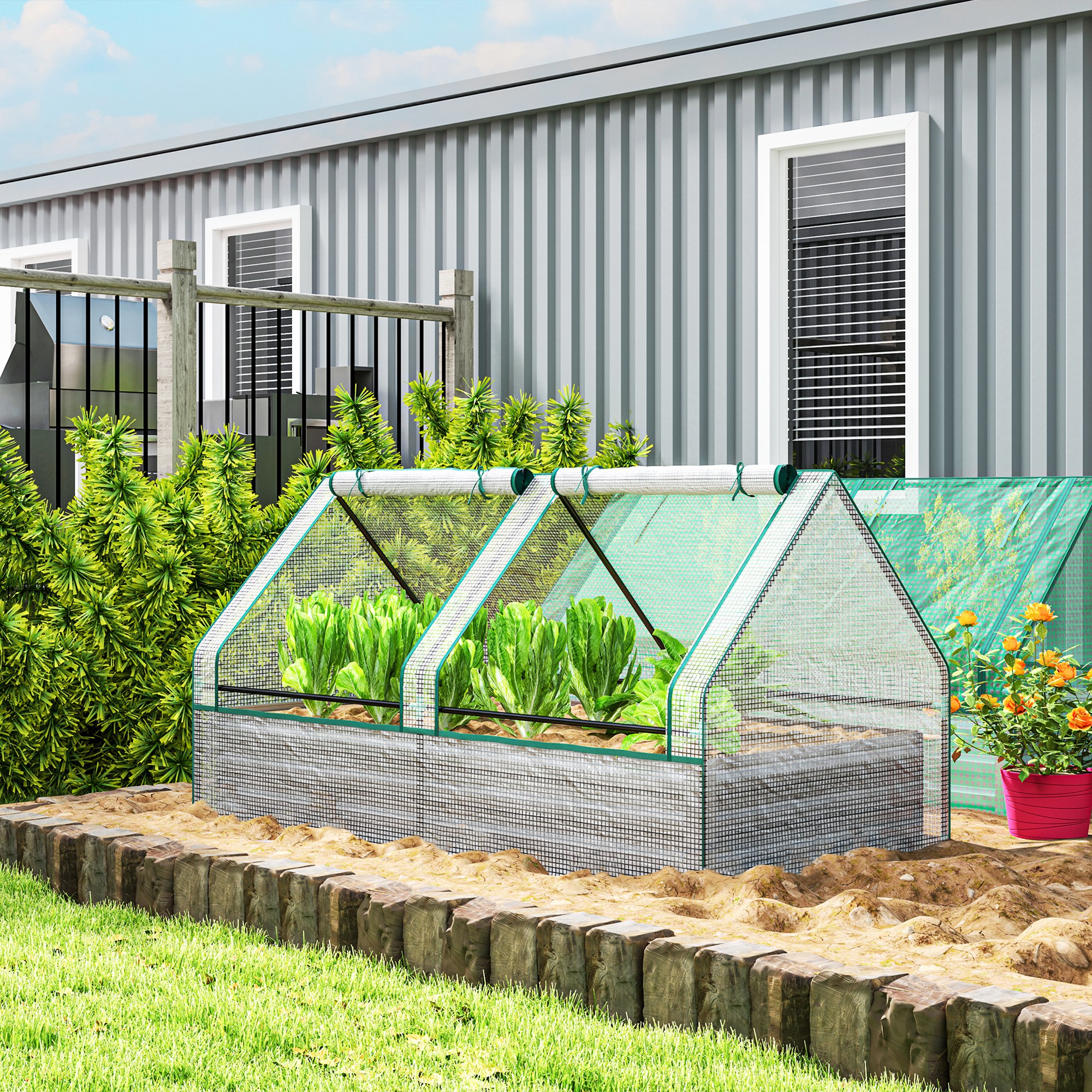 A two-in-one raised planter greenhouse, by Outsunny. Bringing together an outdoor planter and plastic cover: use together or separate. A steel frame for a strong structure. The UV-resistant cover protects plants against outside weather, whilst maintaining high humidity levels to encourage plenty of growth. Check out compact piece and start gardening your way.