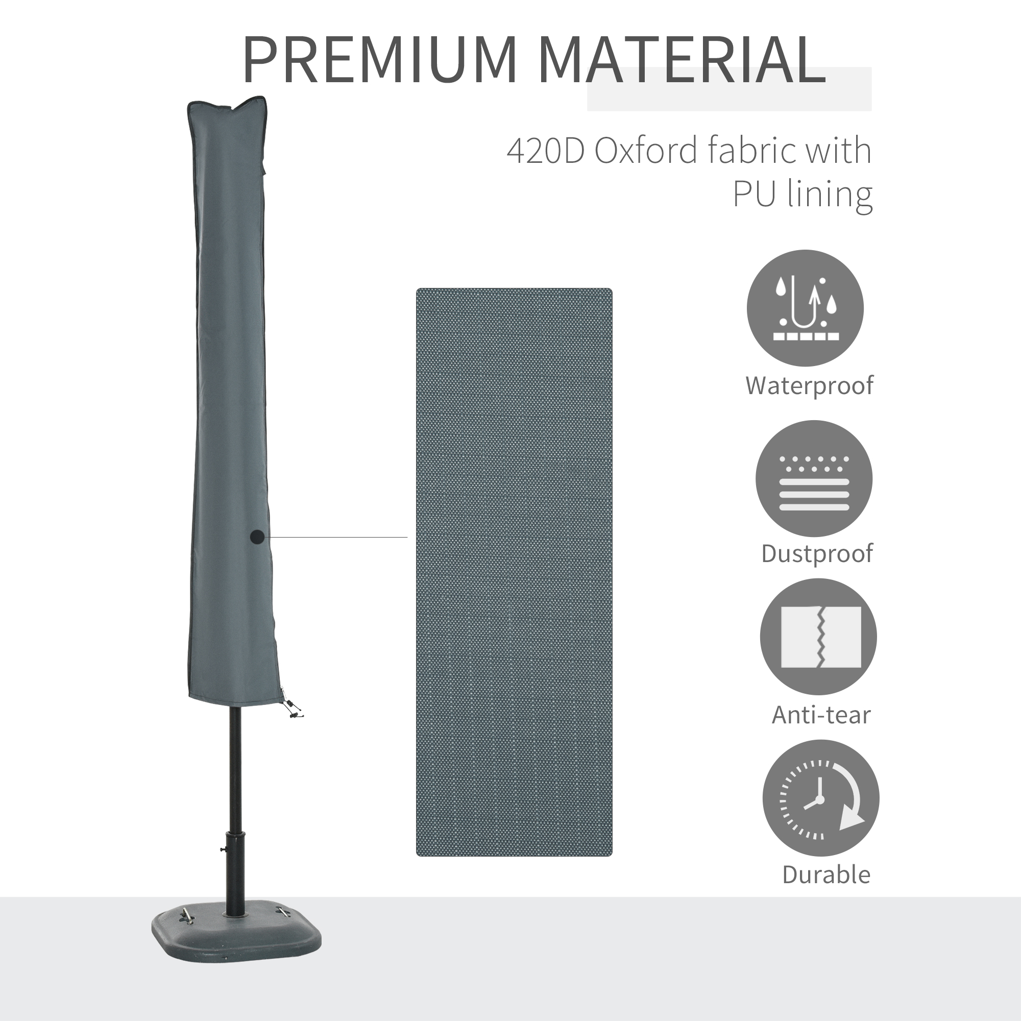 This Outsunny outdoor umbrella cover is a great solution to protect your umbrella when not in use. Made from high density oxford fabric with a waterproof coating to protect from weather elements. It comes with a side zipped design, making it easy to put on and take off. There is also a bottom buckle to close tightly, this will protect and increase the life span of your umbrella.