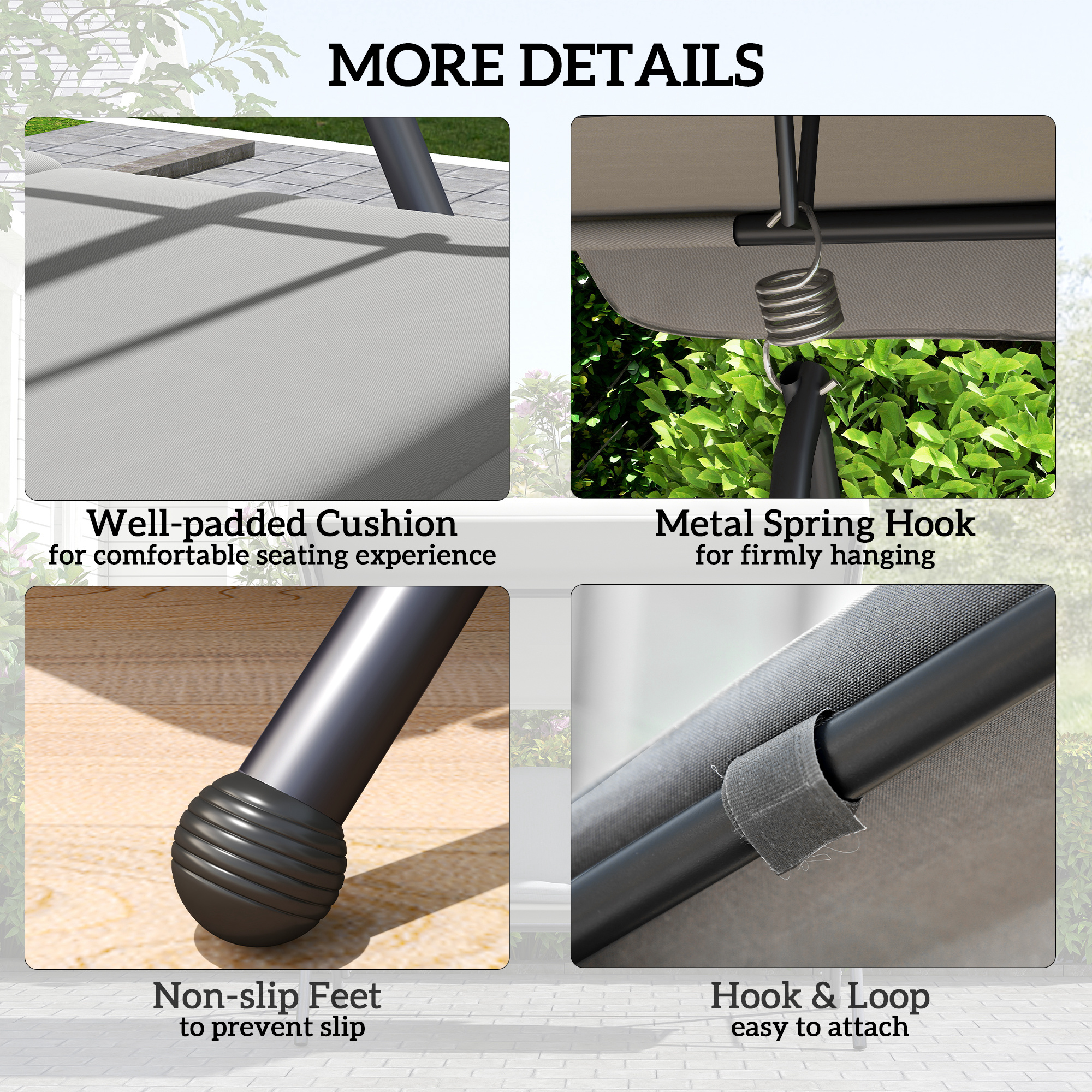 - Swing seat with canopy, great for relaxing in the garden during the summer. Seats three people