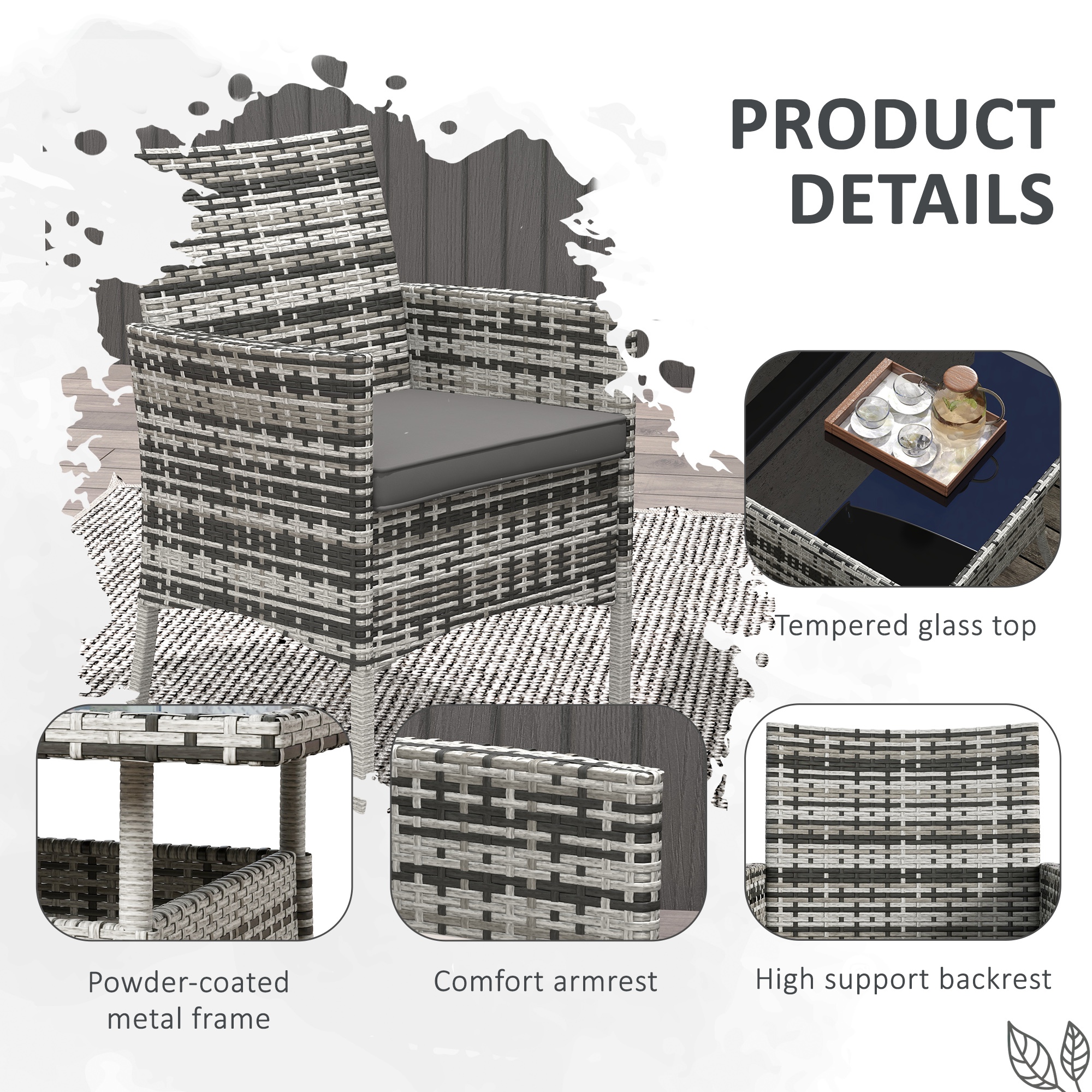 - Material: Steel, PE Rattan, Tempered Glass, Polyester