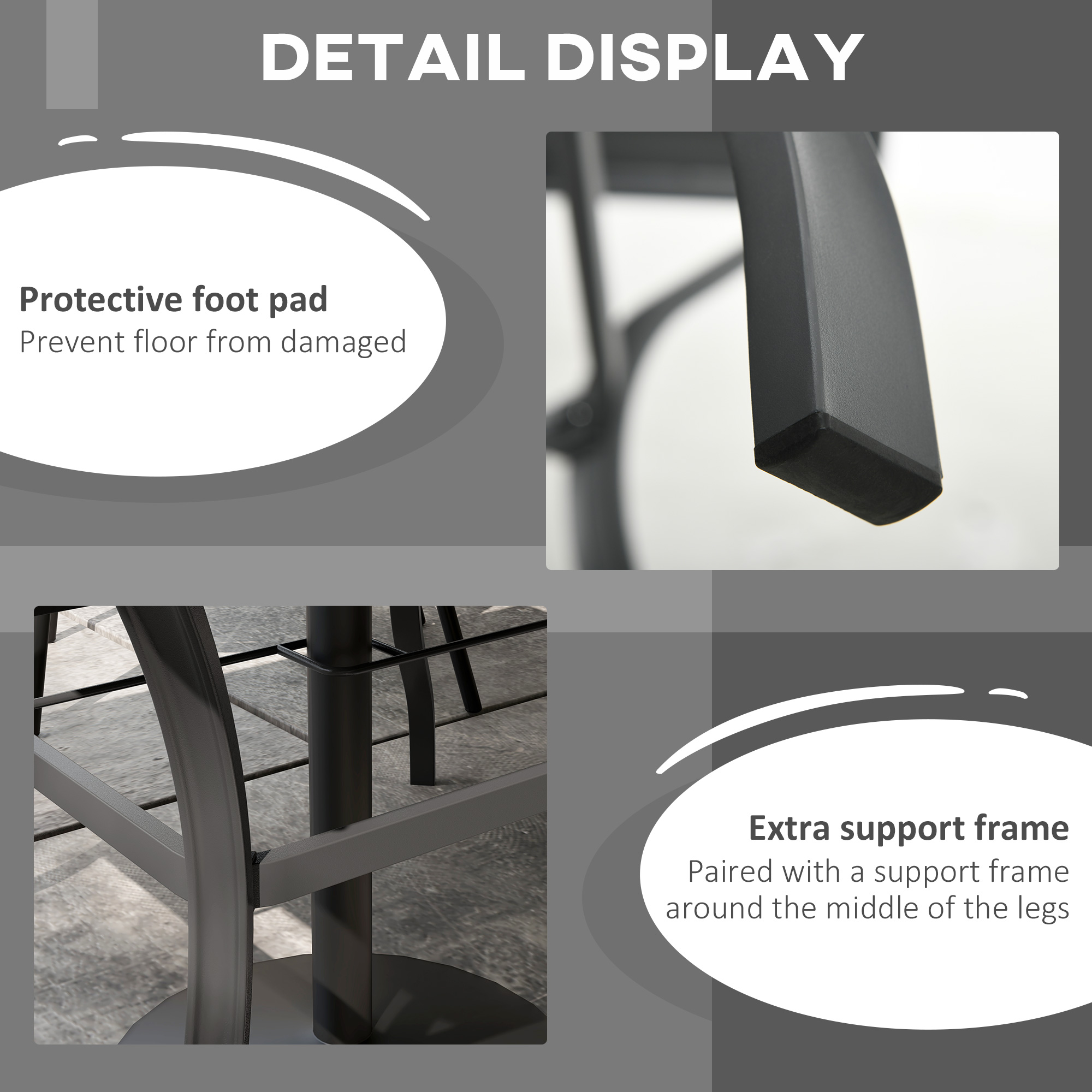 A sleek, strong addition for your garden and outdoor areas. Made from steel, this Outsunny garden table is a strong and sleek piece. It's large enough for up to four people: gather round with friends. A middle hole gives room to hold a parasol umbrella: keep safely shaded as you relax. Complete with four legs for balance.