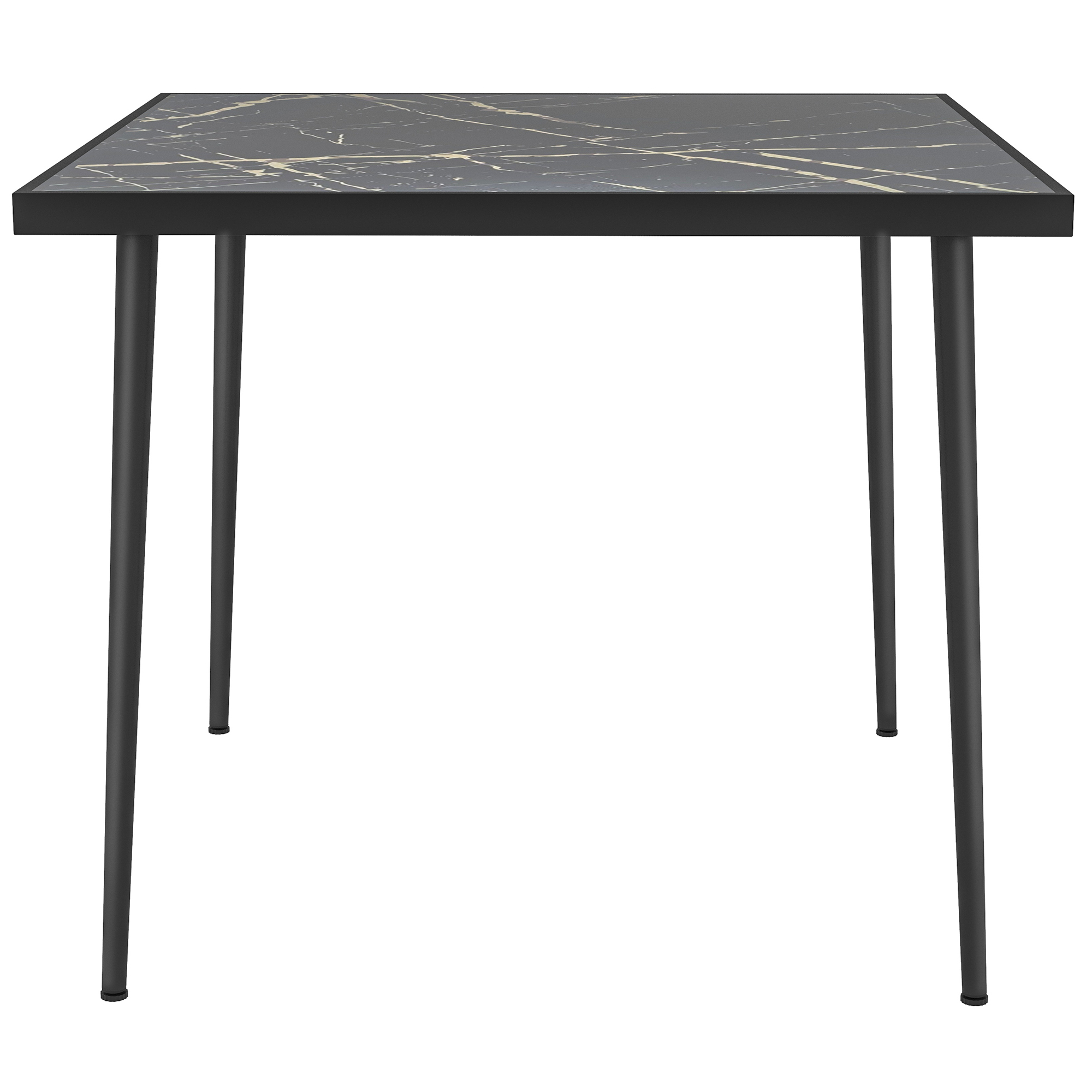 Bring your favourite people together outdoors, thanks to this Outsunny square dining table. A powder coated steel frame for a strong and supportive core, fitted with a glass tabletop. The glass is tempered for extra strength to ensure a safe dining surface - finished in a marble effect for beauty. Patio table is complete with adjustable feet for balance.