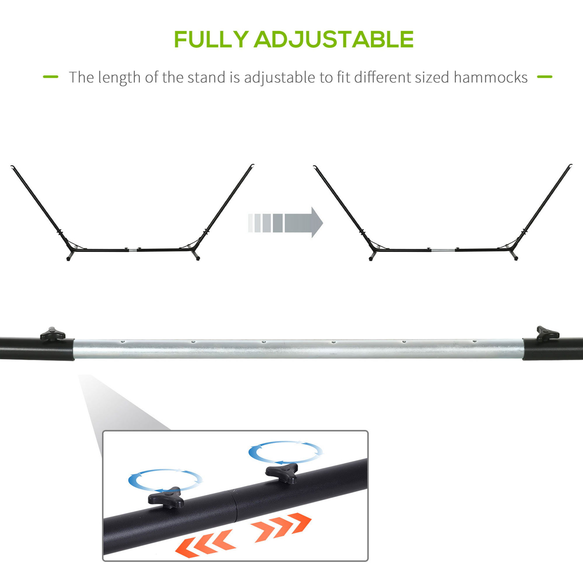 - Heavy-duty metal hammock stand, length adjustable