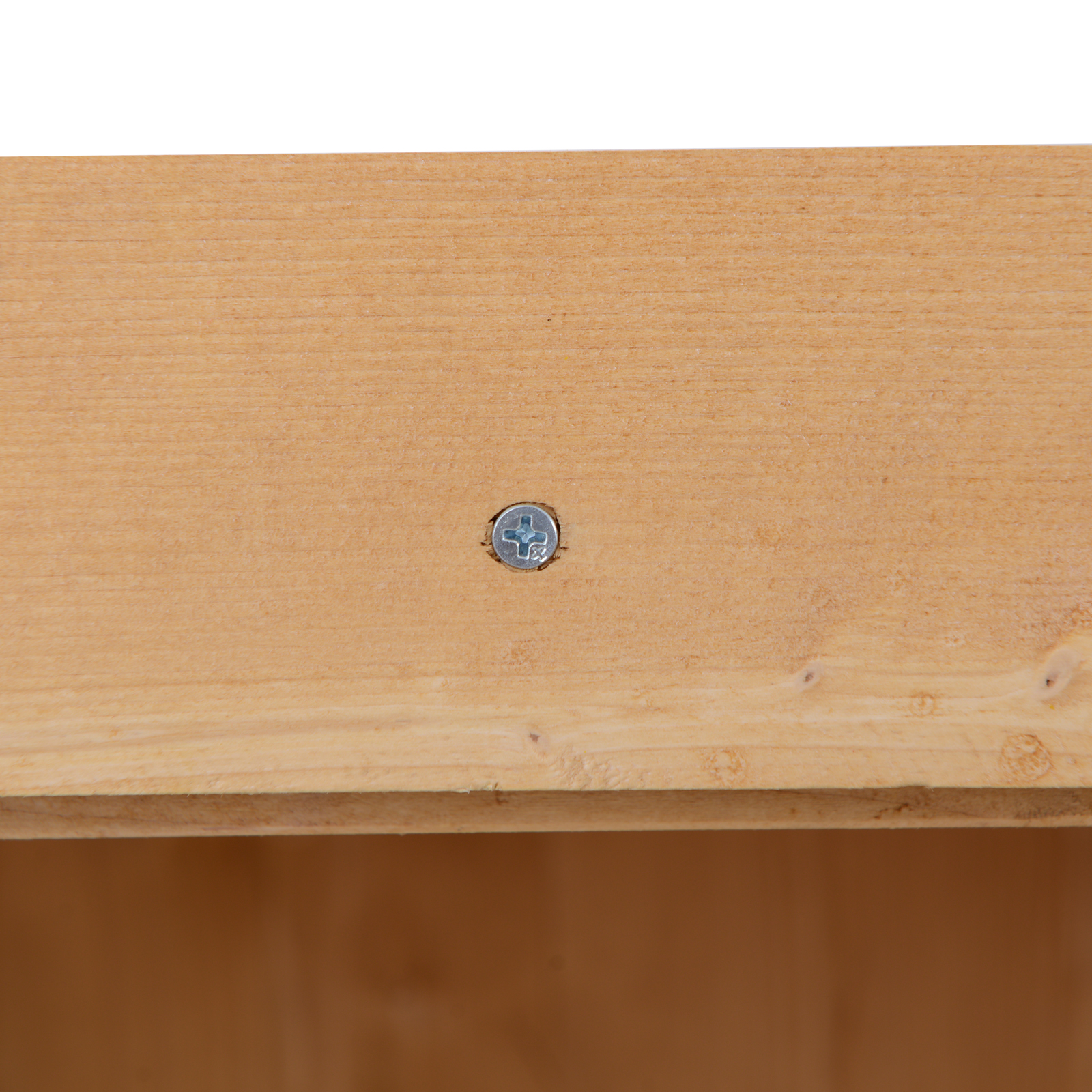 Keep your garden neat and tools in their place with this small shed from Outsunny. A lift-up hinged roof and easy-access double doors give you convenient access from both angles. Magnetic closures help keep the doors safely shut even in windy days. This solid wooden garden shed with a weather-resistant coating handles the outdoors and adds a natural touch. Two-tier shelves help you keep tools, flower pots and cleaning supplies organised. A practical and attractive tool shed for every tidy gardener.