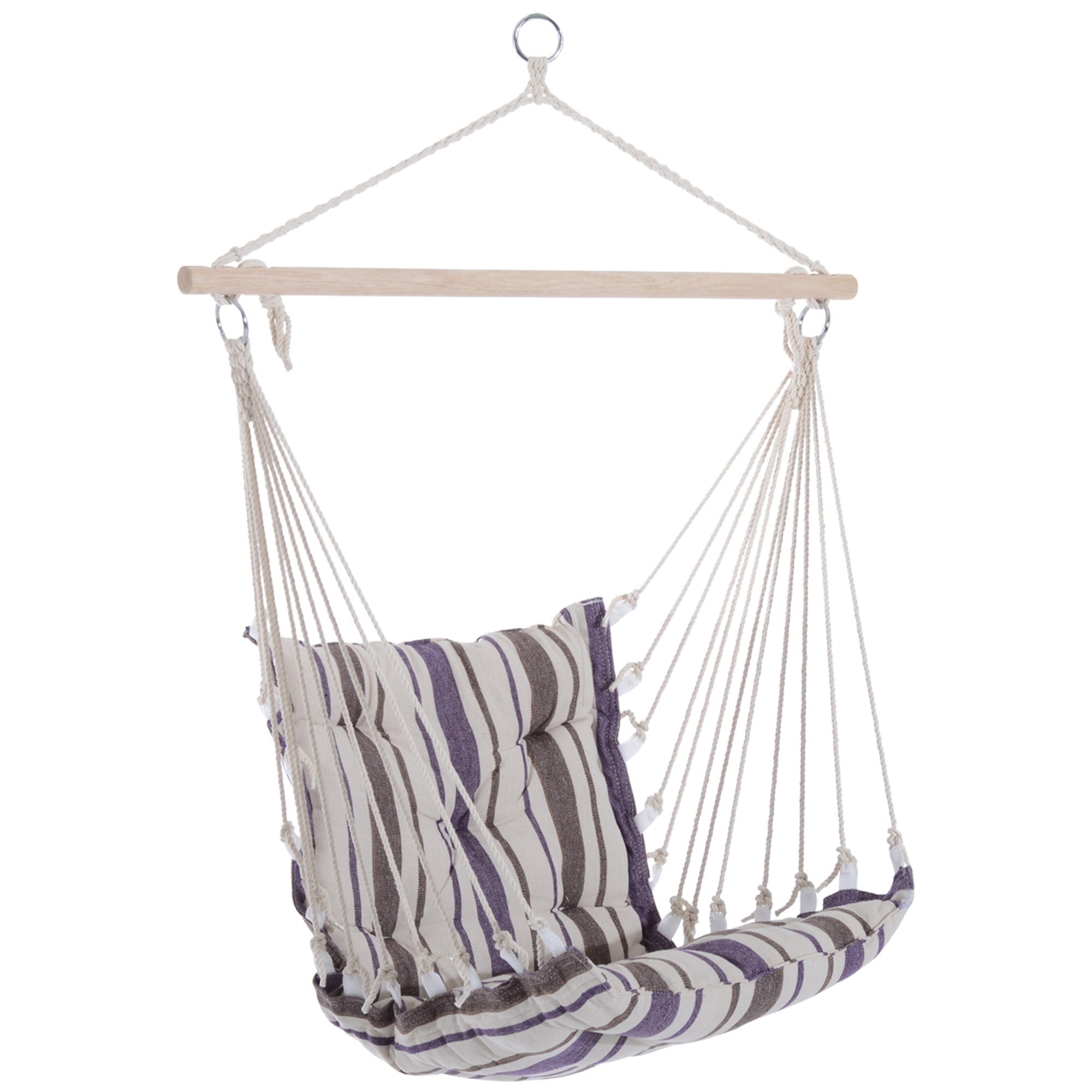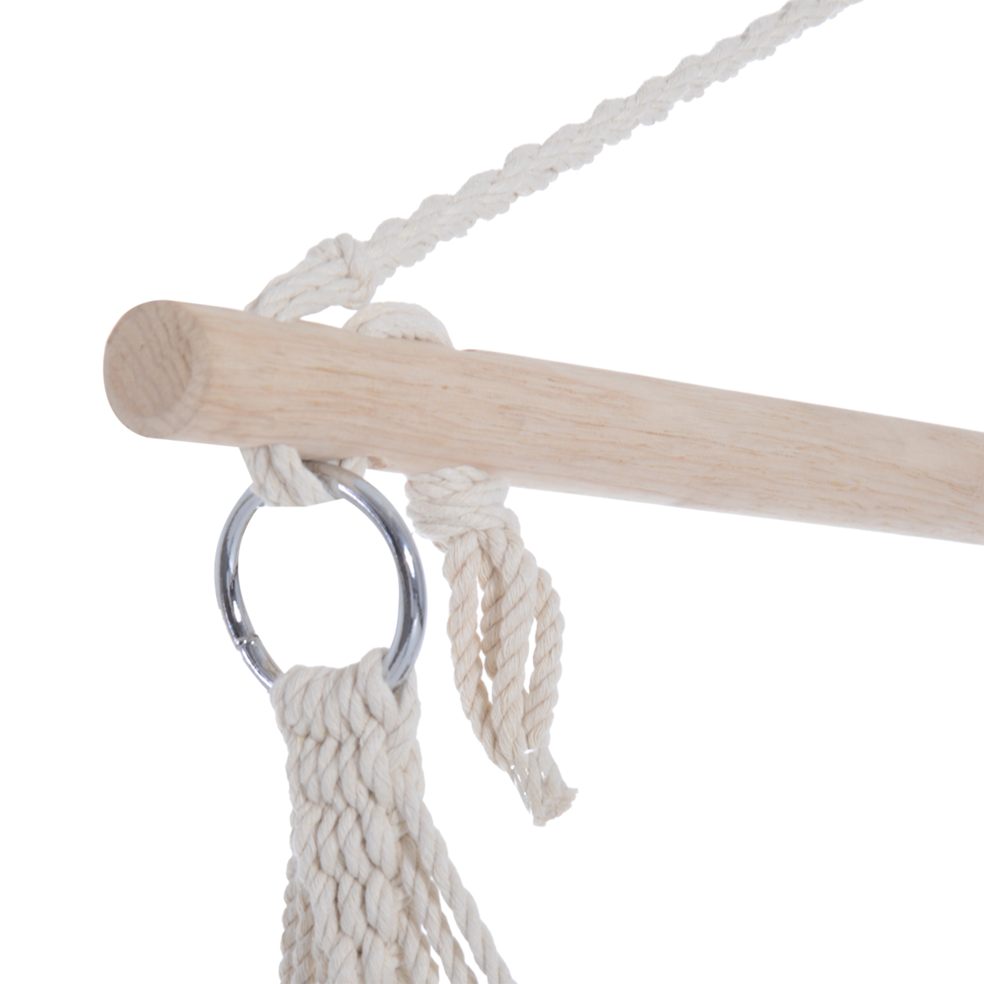 Spend your lazy day with Outsunny's hanging rope chair! This comfortable garden hammock chair in vibrant color offers you great relaxation and makes an ideal addition to any outdoor vacation. The swing hammock comes with the firm cotton rope and solid hardwood which can hold up to 120kg. The thick padded seat and back support allow the extra comfort in your seating experience. Stylish and functional, this hanging chair will surely be your companion in your leisure time!