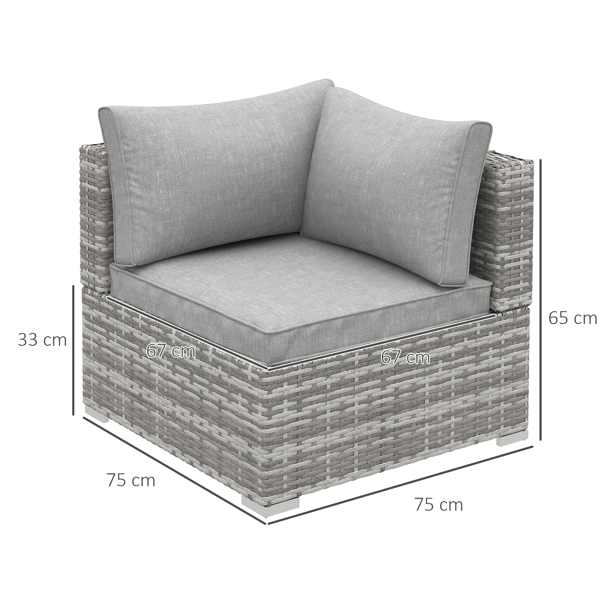 This modern rattan wicker corner sofa is must-have design from Outsunny. The core frame is made from galvanised metal, which is tough and rust-resistant for durability. It's wrapped with PE wicker for extra durability and suitability for outdoor use. Comes with a padded seat and two thick cushions for comfort - covers are removable and washable for hygiene. A great way to unwind in a cute and cosy spot outdoors with the sun on your face.