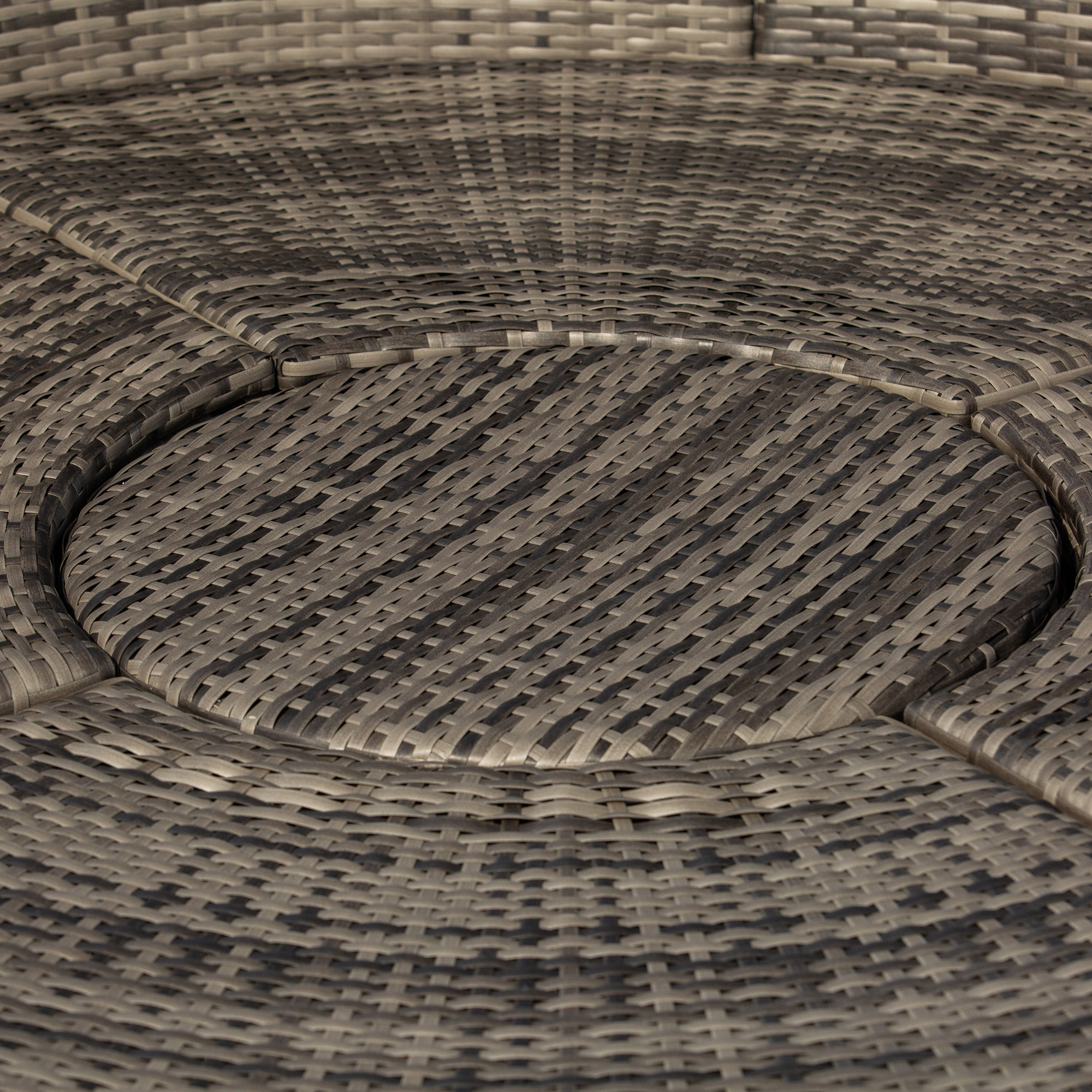 A hybrid of rattan loungers from Outsunny. The set includes a half-round sofa with retractable canopy, two quarter round chairs and a round table. Using metal as the base frame for a strong structure, each piece is wrapped with PE rattan to provide a shield against light weather. Thick cushions on each seat of the rattan sun lounger are removable and washable covers, with a large overhead canopy completing this set to offer you protection from sun glare and wind. An innovative design to get out.