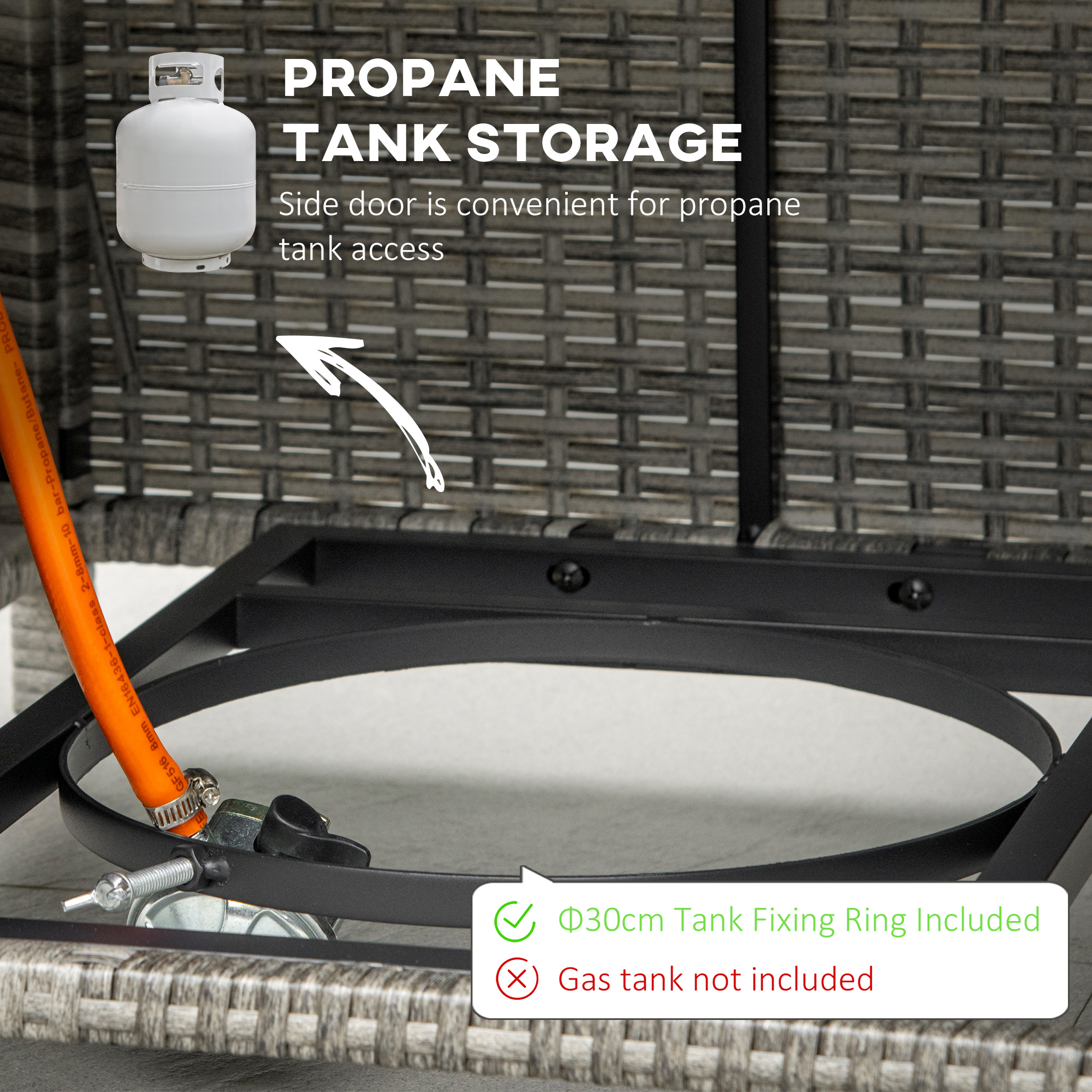 - Rain cover included. Propane tank is required - not included