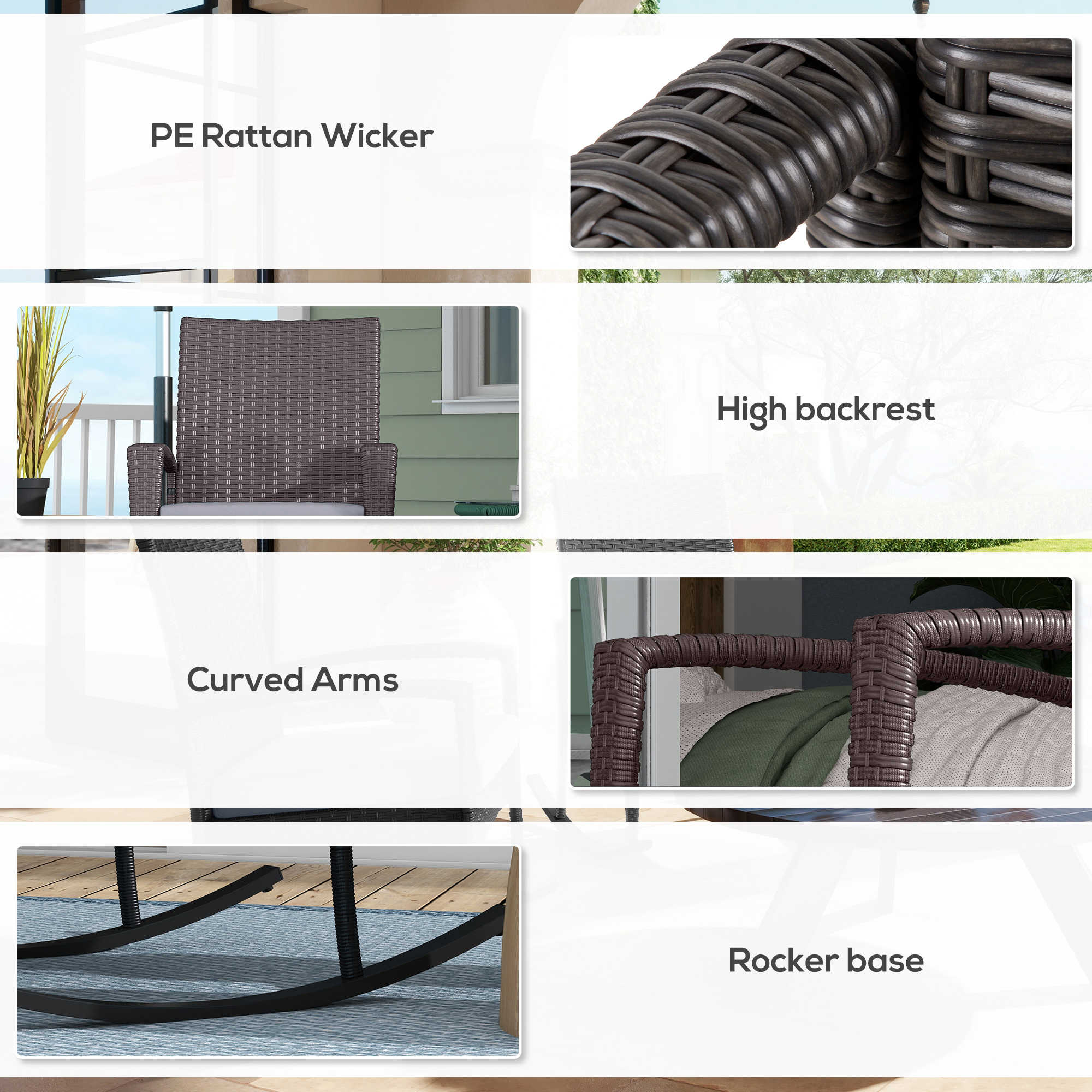- Material: PE rattan, Polyester fabric, Steel frame