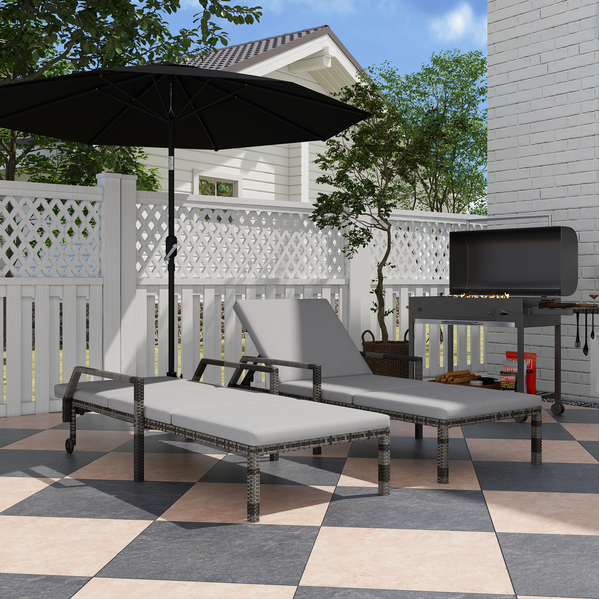 This Outsunny sun lounger set is great for all-day relaxing. With a longline padded cushion and five-position back, this is a comfortable piece that can be customised to your choice. A metal frame for a strong core, wrapped in plastic wicker - protecting the metal whilst creating a stylish garden look. Complete with wheels to move around easily.