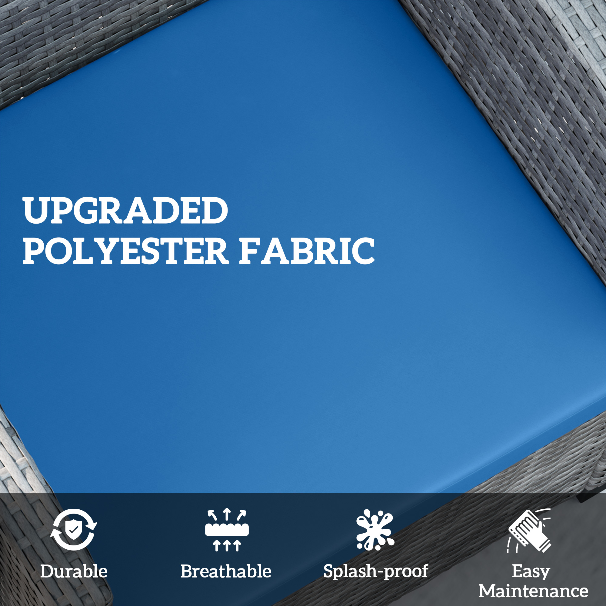 New comfort for your outdoor set: go for these three Outsunny replacement cushions for rattan furniture. Comes with three pieces: two single seat cushions and one double seat cushion. Each cushion is filled with thick cotton for comfort. The polyester covers of outdoor cushions for chairs are breathable and fade-resistant, with a zip fastening to remove and clean easily. Comfort and style in your garden done the new way.