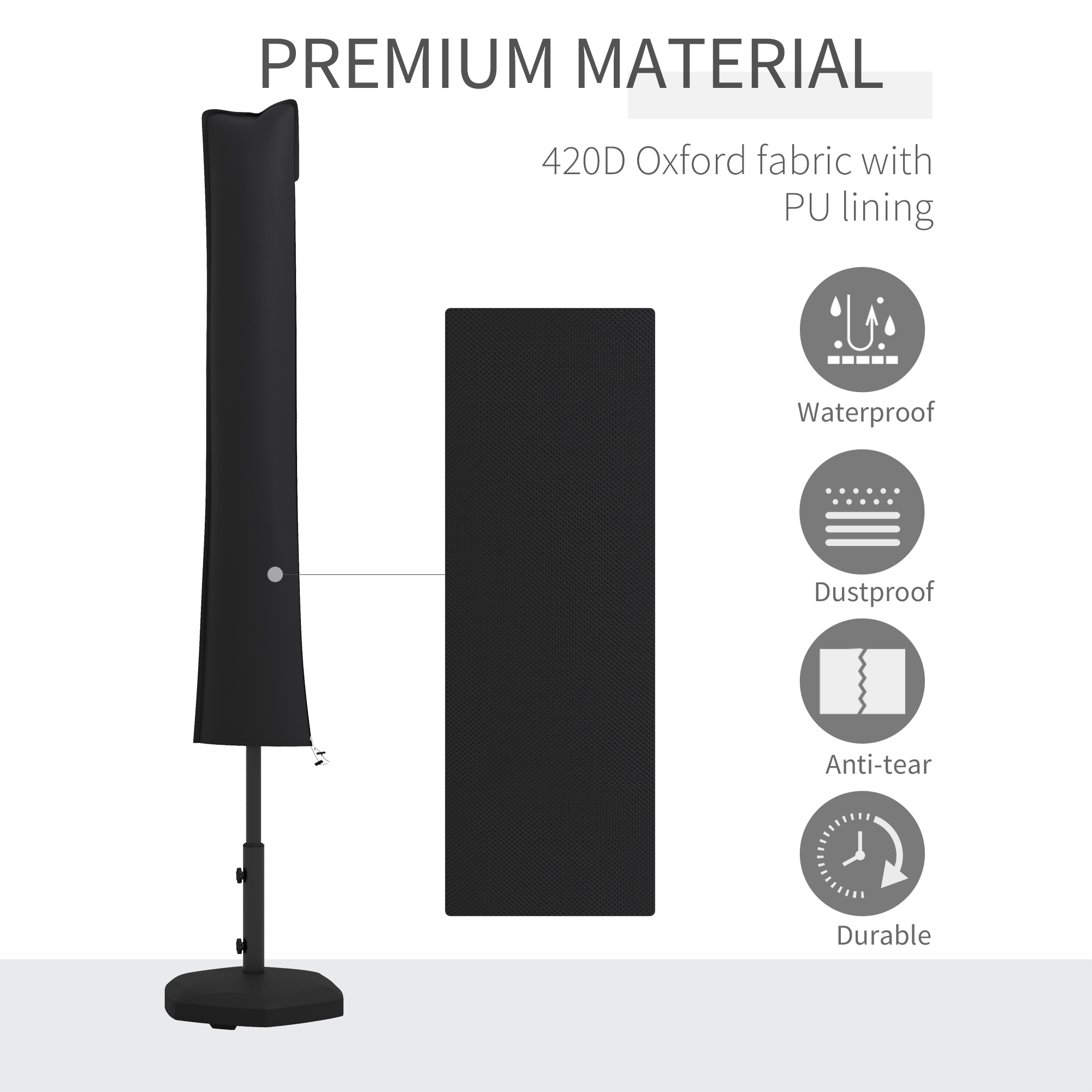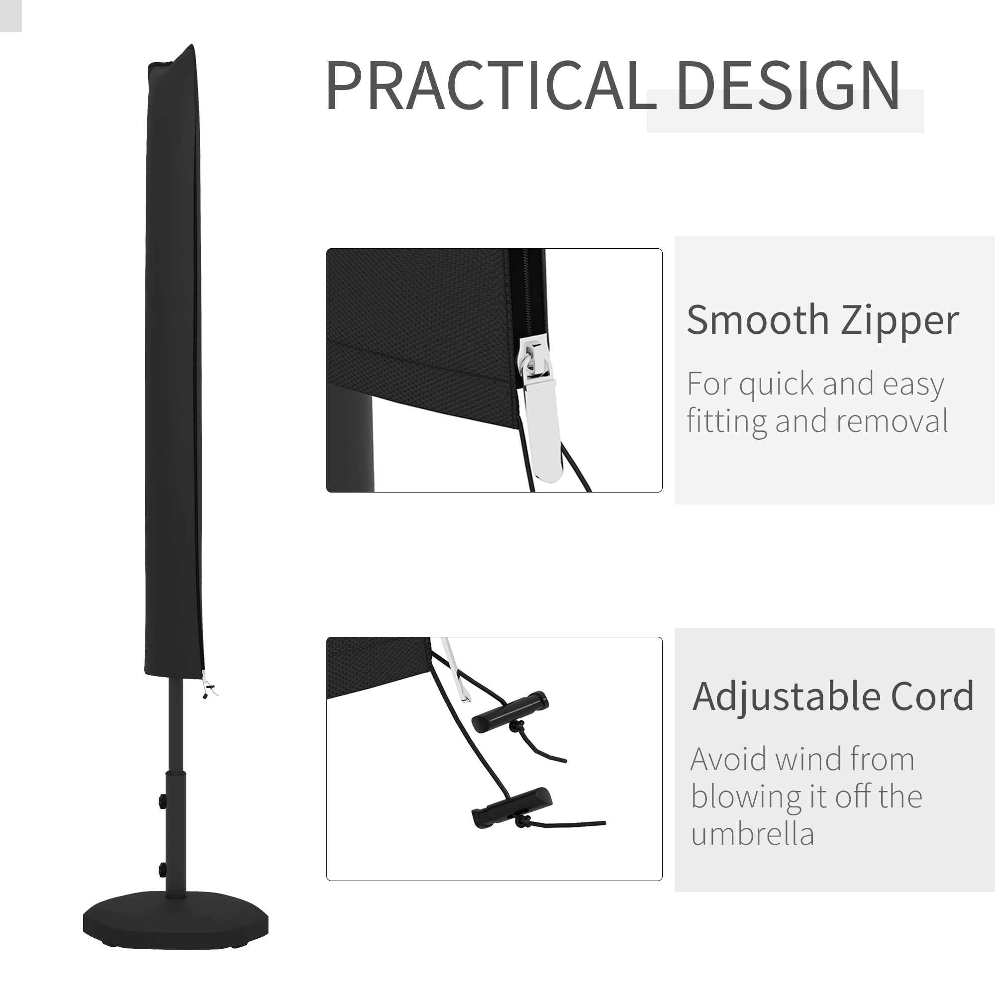 This Outsunny outdoor umbrella cover is a great solution to protect your umbrella when not in use. Made from high density oxford fabric with a waterproof coating to protect from weather elements. It comes with a side zipped design, making it easy to put on and take off. There is also a bottom buckle to close tightly, this will protect and increase the life span of your umbrella.