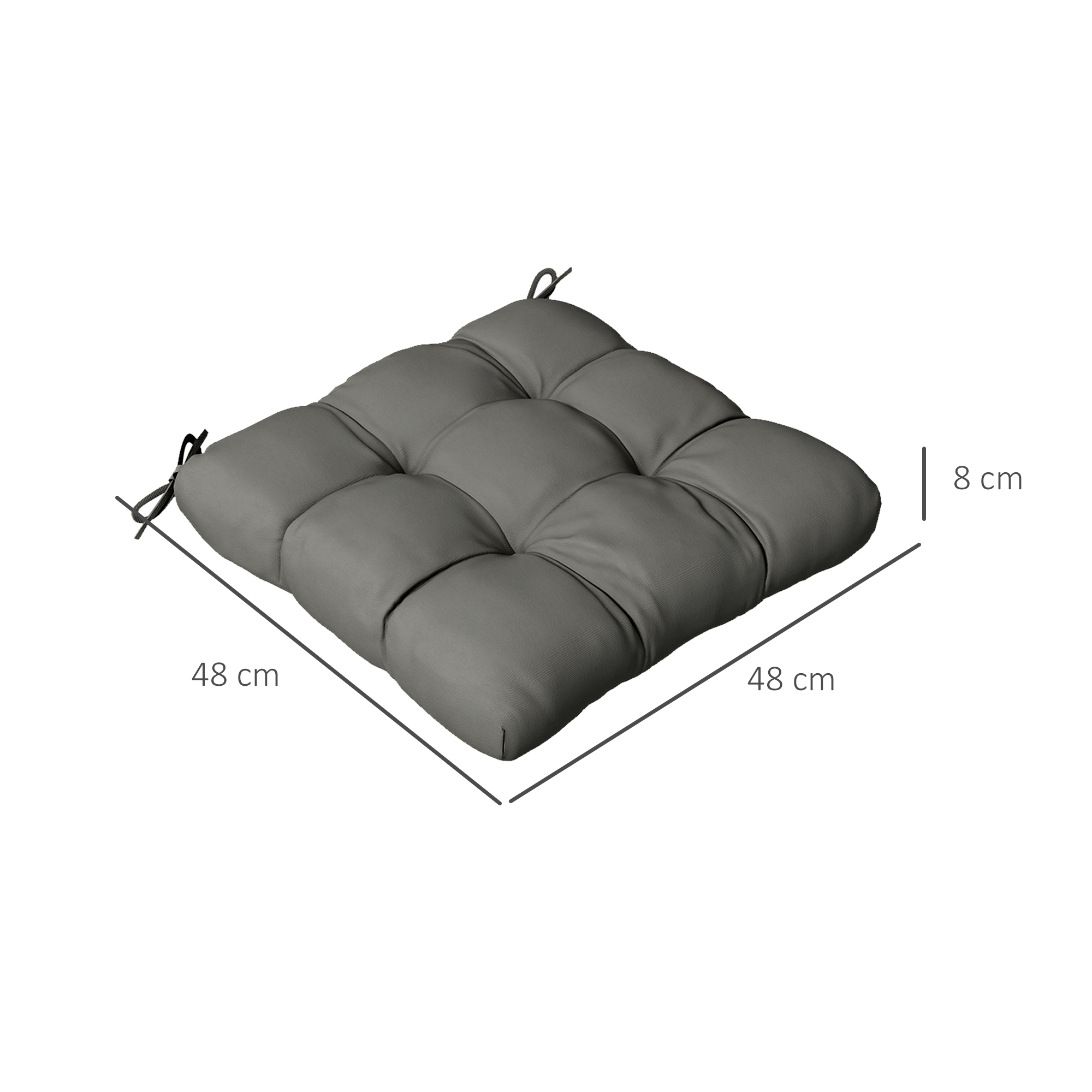 Colour meets comfort with this Outsunny cushion set. Filled with thick foam, you'll enjoy sitting outdoors for extended hours. Fabric covers are soft, the tufting adds style. Flame retardant for safety, each cover is resistant to light stains for cleanliness. Complete with tie fastenings to secure to each seat.