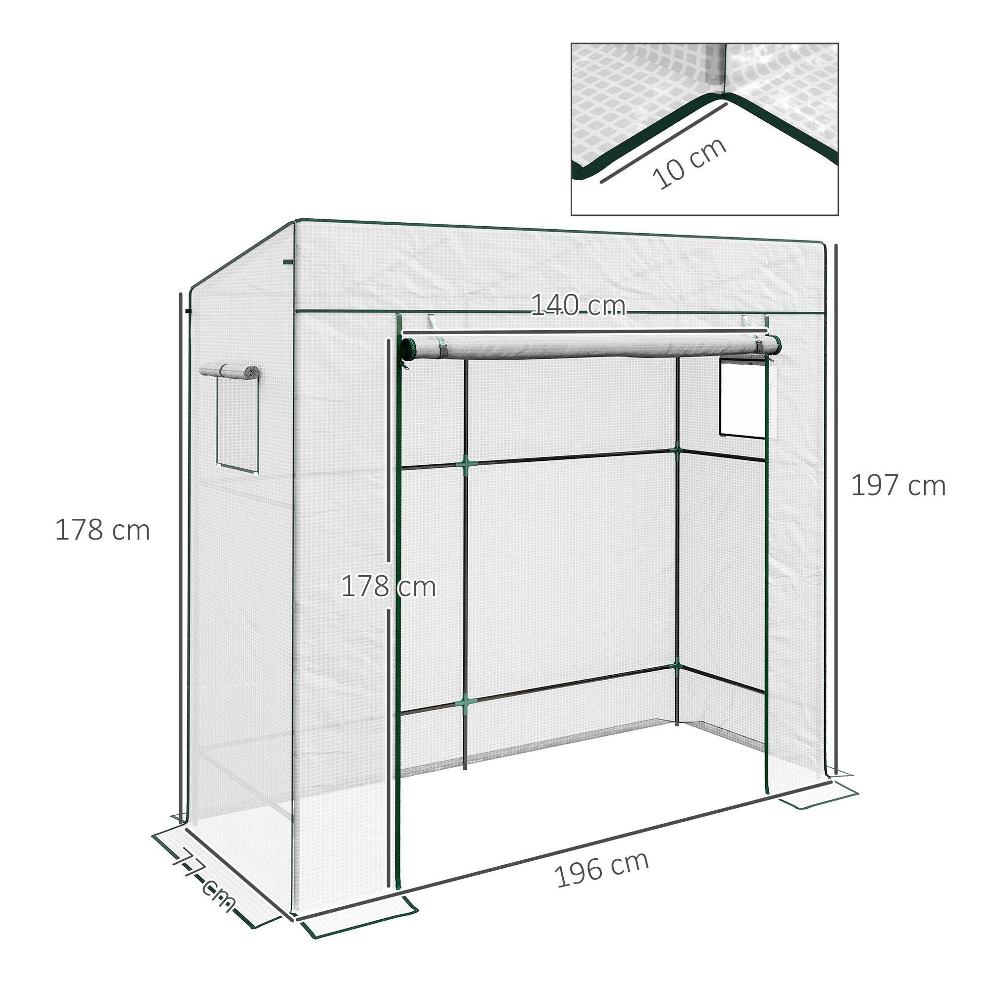 Grow a moderate variety of plants and vegetables with this 77 x 196cm Outsunny greenhouse. The plastic cover creates safe shelter inside, complete with a zipped door to access. Two windows bring in fresh air, when needed.