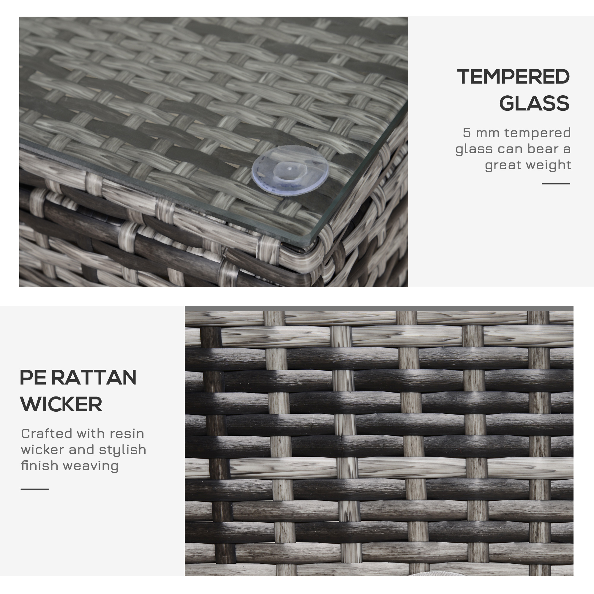 - PE rattan in a stylish mixed-grey is resistant to UV fading and mild weather damage