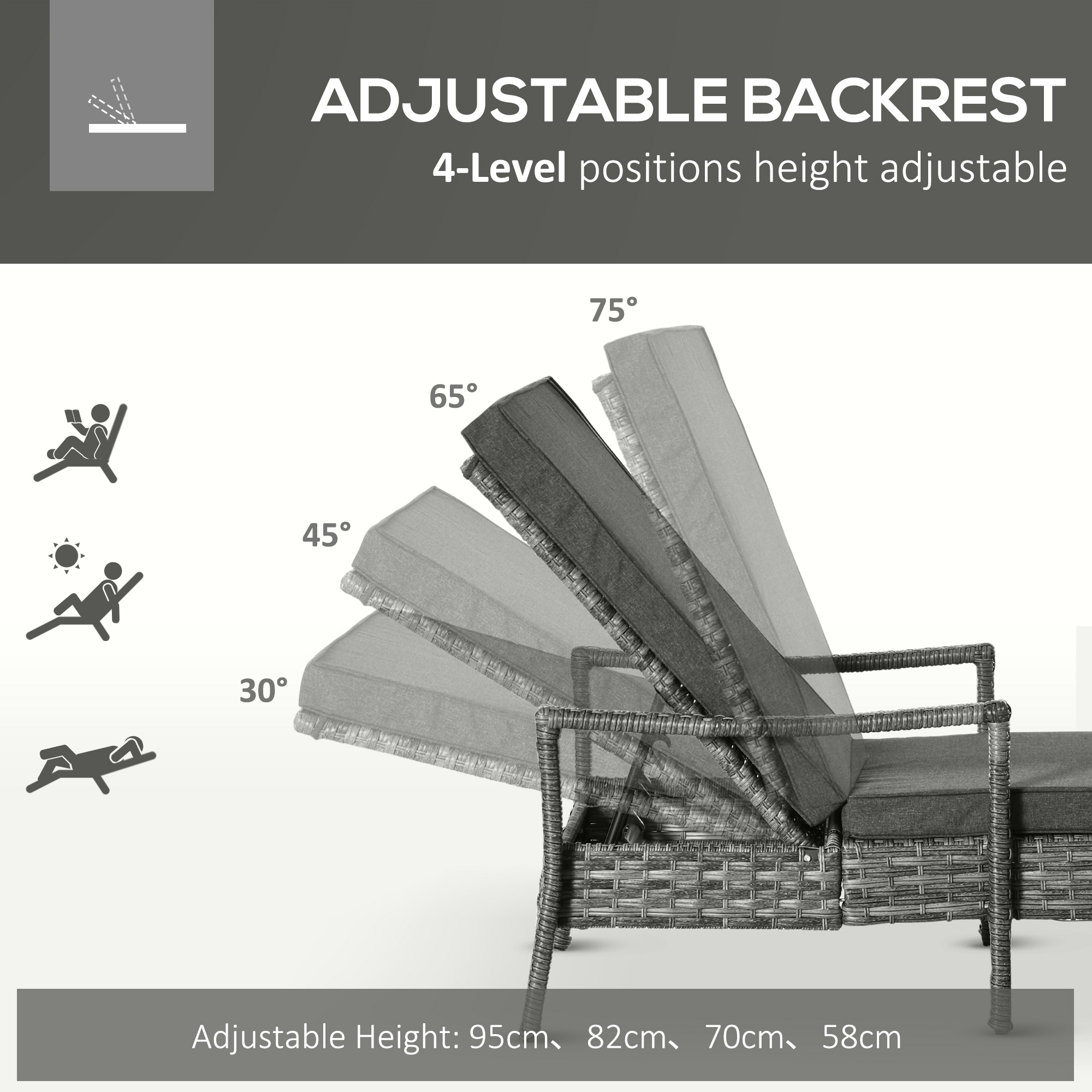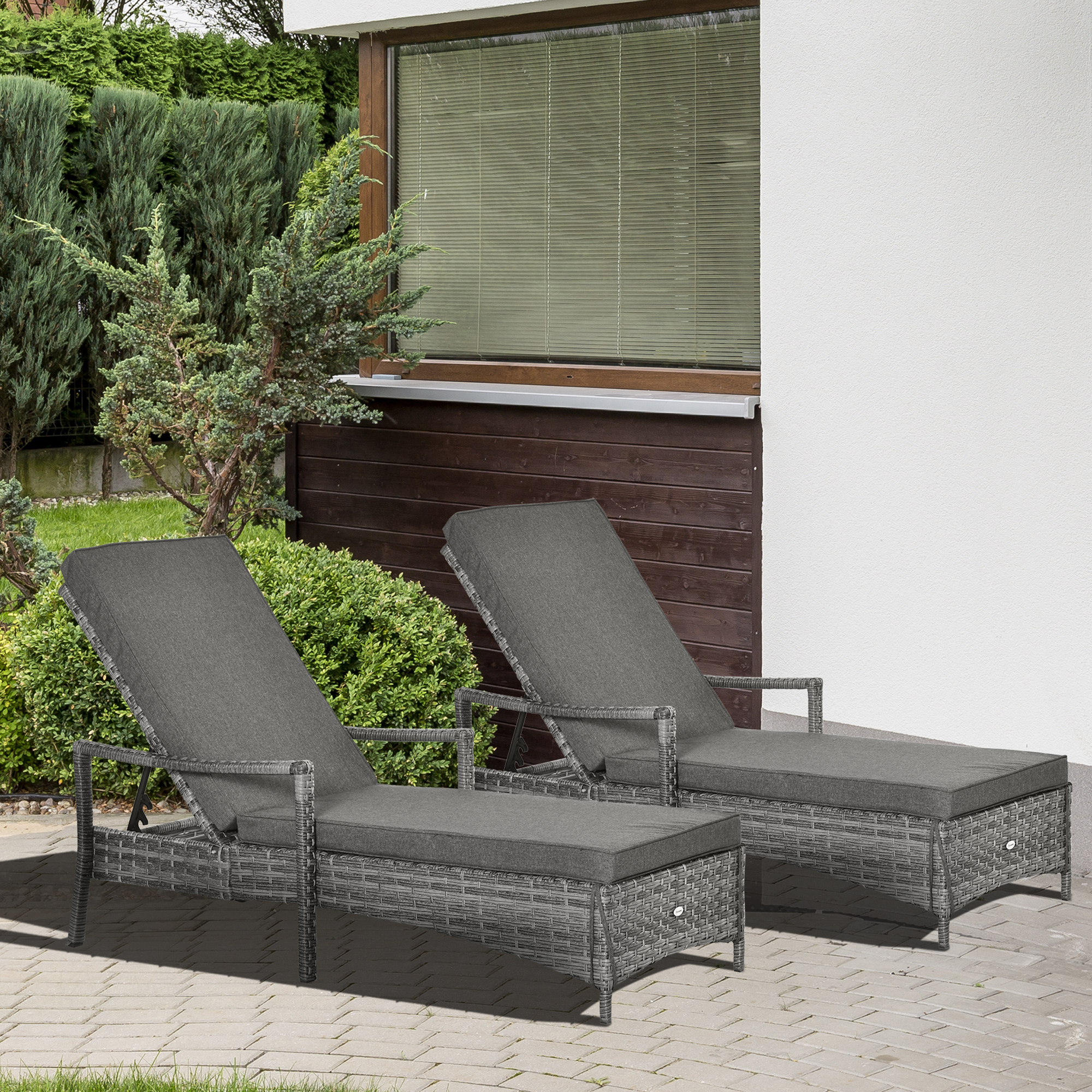 Choose this garden loungers from Outsunny for the perfect sunbathing partner in the comfort of your own garden. Using galvanised metal for a stable and robust structure, the frame is wrapped in PE wicker rattan, ensuring durability outdoors with little maintenance. The four-position adjustable back allows you to set it to a level which is best for you, whilst a longline padded seat provides all the comfort you need, with 2 pieces lounges allowing you to relax with a friend whenever.