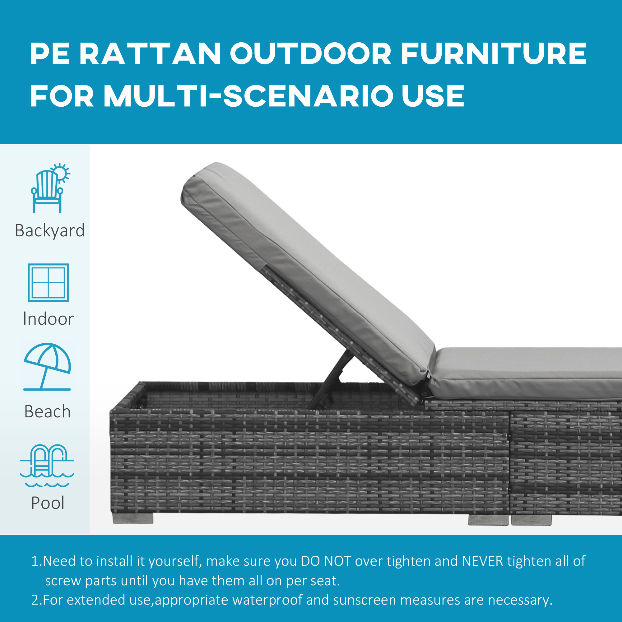 Choose this lounger from Outsunny for the perfect sunbathing partner in the comfort of your own garden. Using galvanised metal for a stable and robust structure, the frame is wrapped in PE wicker rattan, ensuring durability outdoors with little maintenance. The adjustable back allows you to set it to a level which is best for you, whilst a longline padded seat provides all the comfort you need, with four foot pads completing this piece for balance and floor protection.