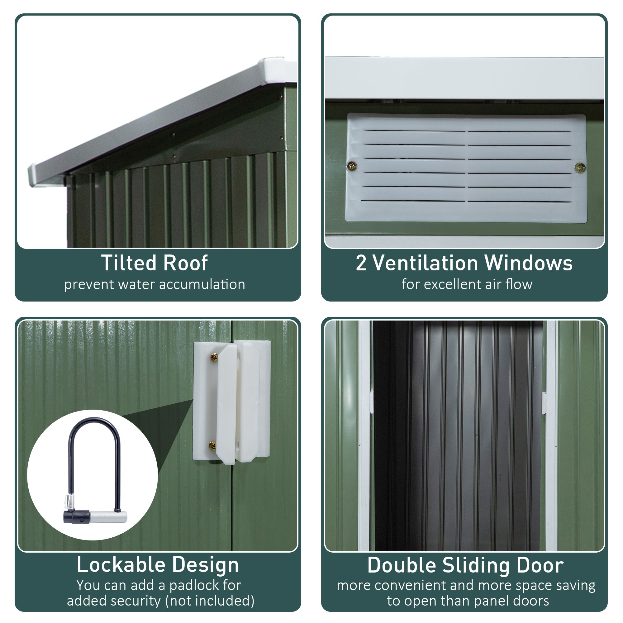 - Air vents to keep storage metal shed inside fresh and aerated