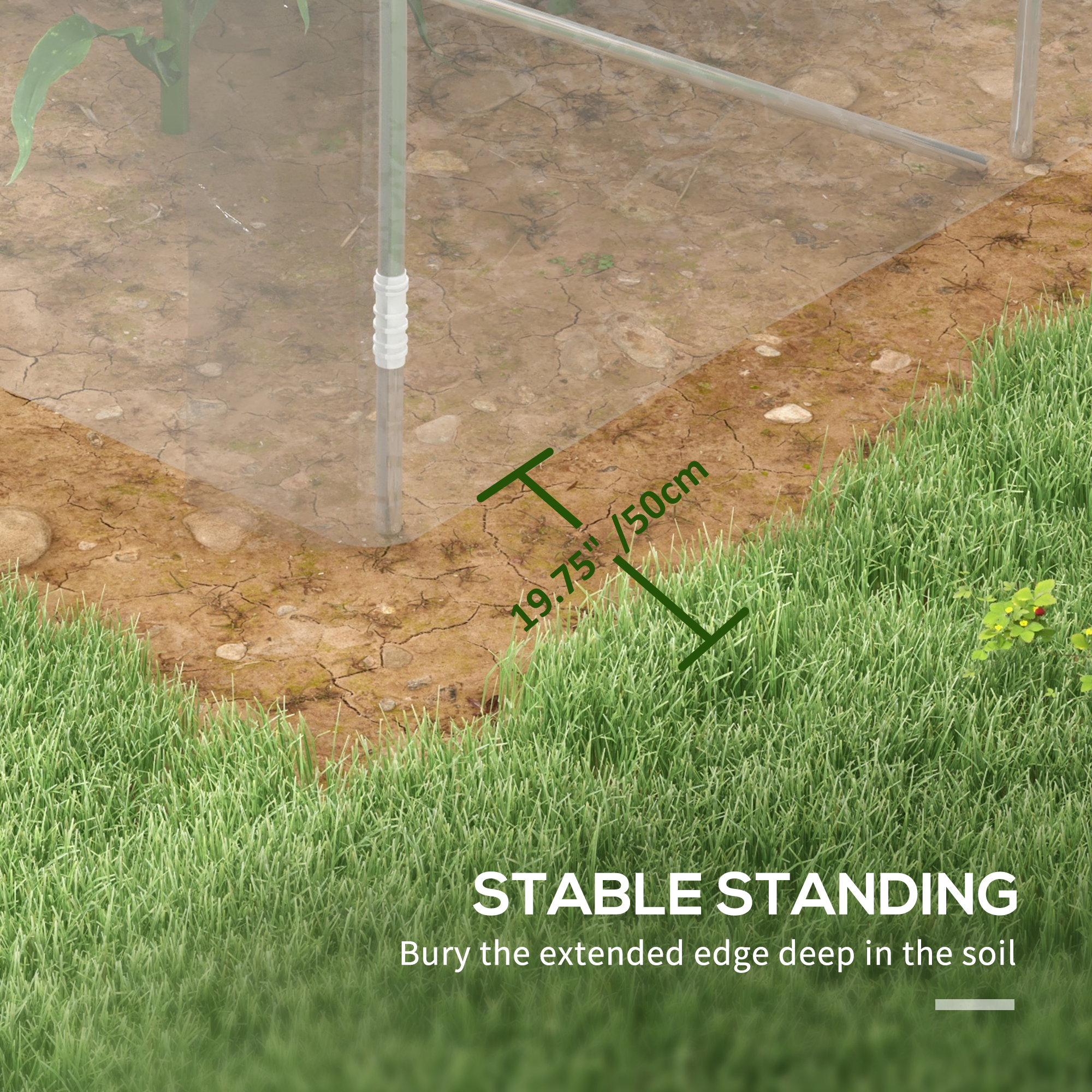 - Clear plastic cover to protect plants inside and trap in heat. 50cm edges to bury into soil