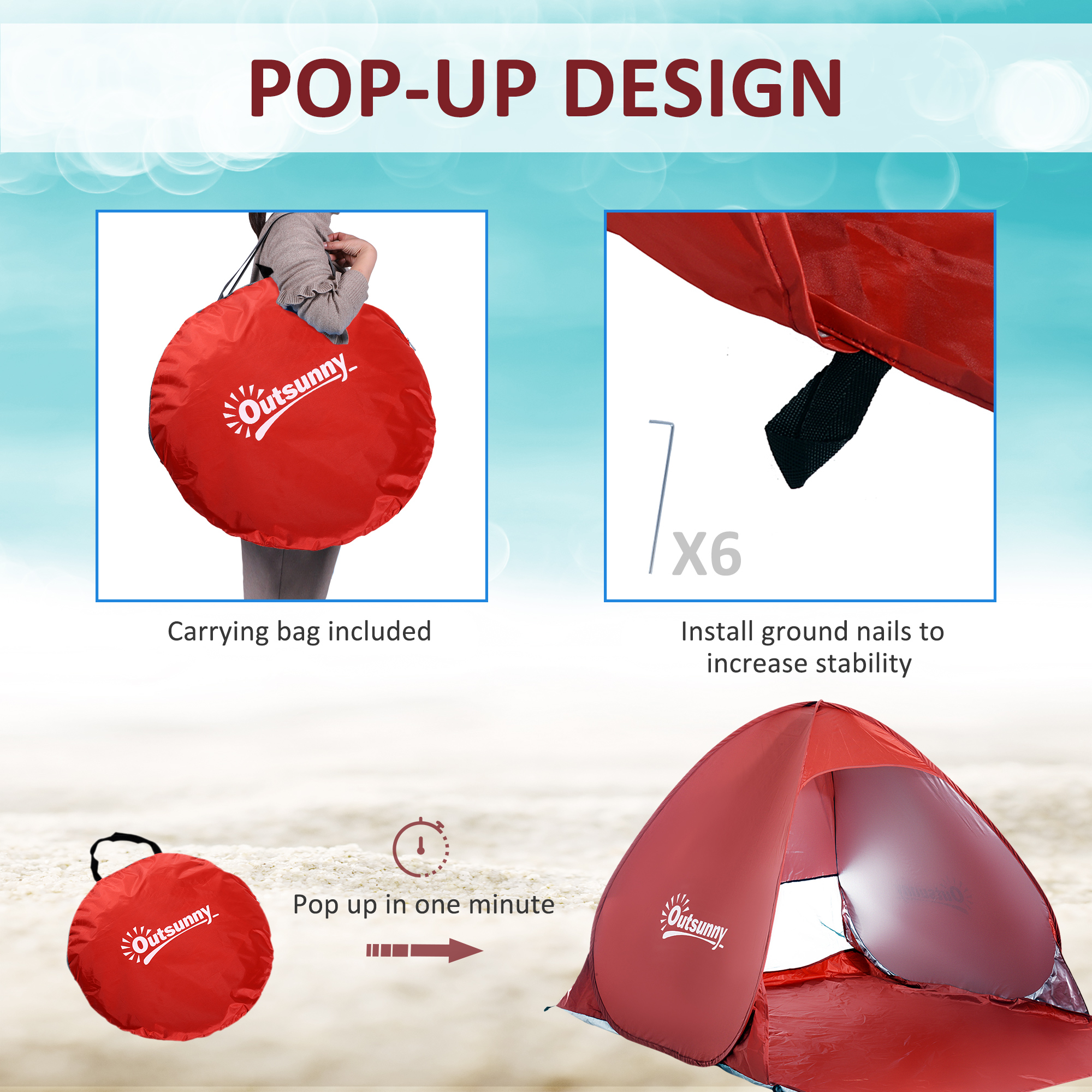 • Sun protection for all-day shade at the park, beach, sporting event