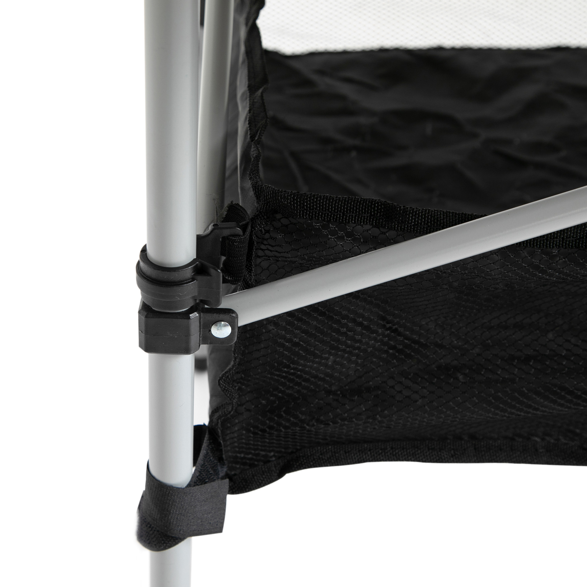 Bring cool innovation into your everyday outdoor life and special trips - choose this steel frame table from Outsunny. The design combines a small square table with a mesh storage bag underneath - meaning you can dine and keep everything you need stored right underneath. The bag can also be used as a temporary bin, preventing rubbish build-up when you're camping. To complete this clever piece, it comes with a detachable aluminium table top which rolls up for compact storage. An essential outdoor dining product which makes your trips even more enjoyable than before.