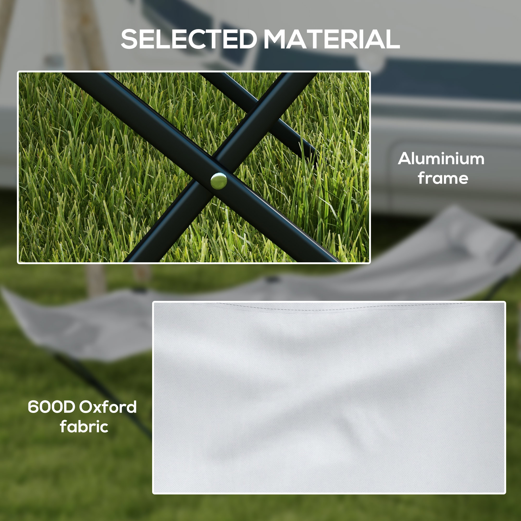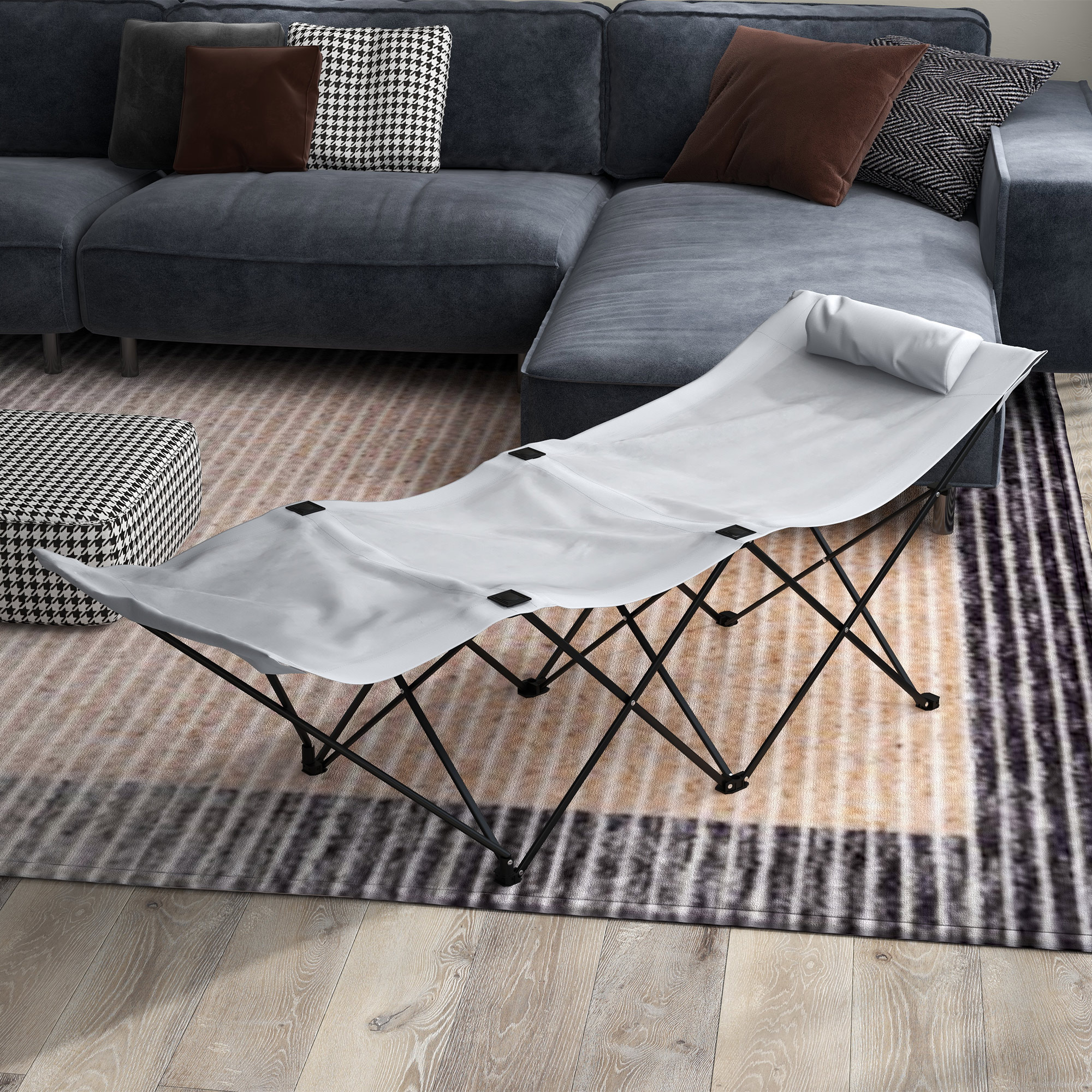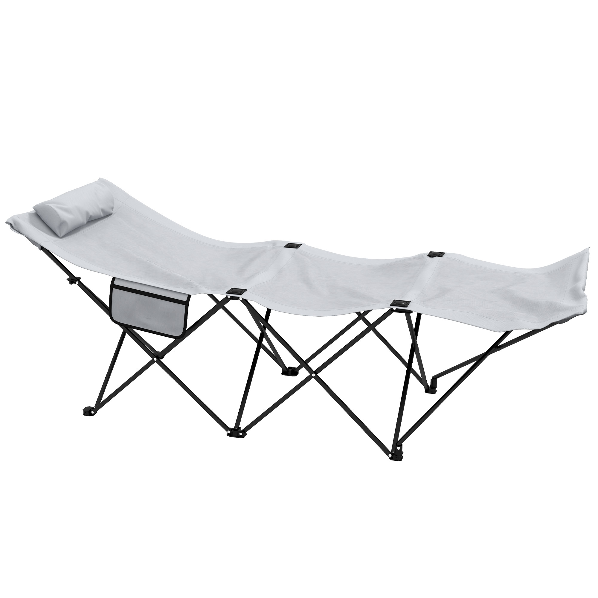 This Outsunny single camp bed is made for relaxing outdoors, wherever you want. The powder-coated steel frame means a strong, supportive structure; fitted with a soft padded headrest for comfort. The side pocket allows you to keep small items close by. Complete with a 180° reclining back: set to a position of your choice. Folding bed design for effortless storage and carrying.
