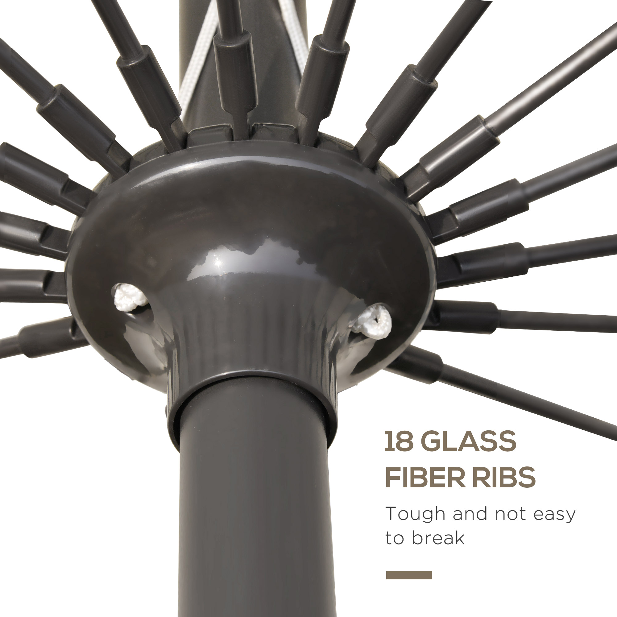 - Metal pole for a tough structure, connected to the sun parasol with 18 fibreglass ribs