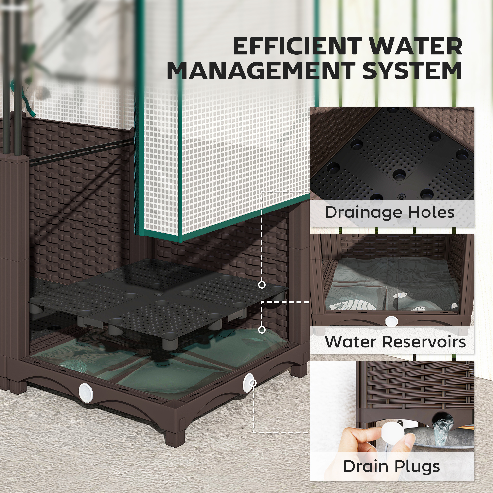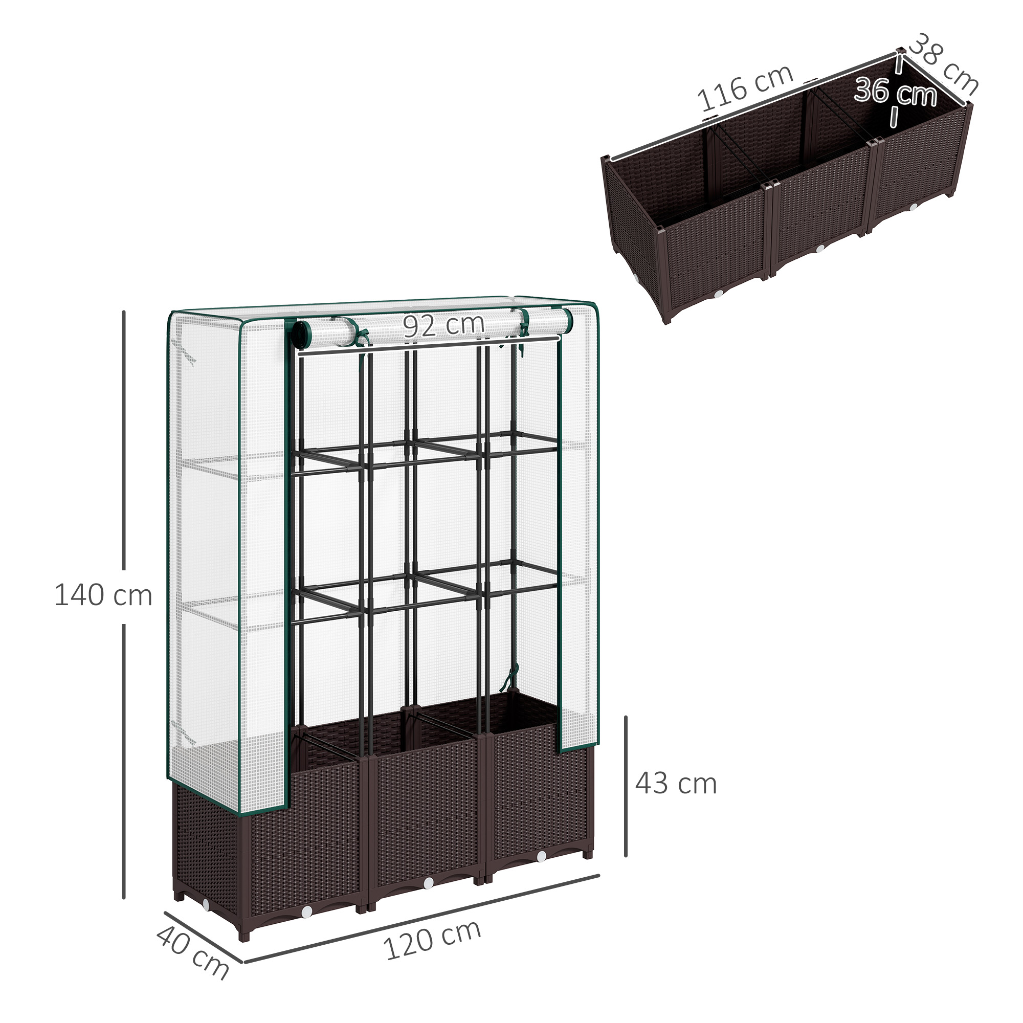 Discover the joys of gardening with the Outsunny Raised Garden Bed! This garden planter includes supportive trellises for your climbing plants and a PE cover to ensure the right humidity and temperature. Its roll-up zip design enhances airflow, making it an excellent choice for your flowers or vegetables. Plus, it's light enough to move to the desired spot in your garden oasis.