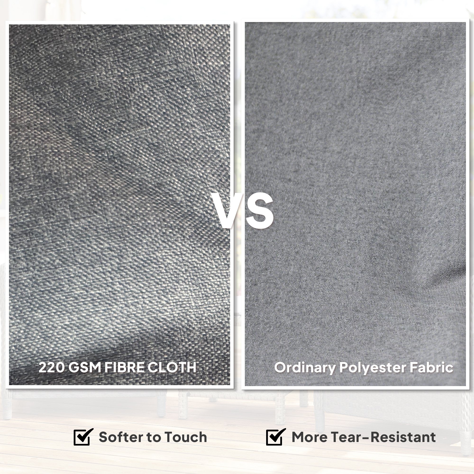 - Thick padded seat and back cushions covered with softer 220 gsm fibre cloth