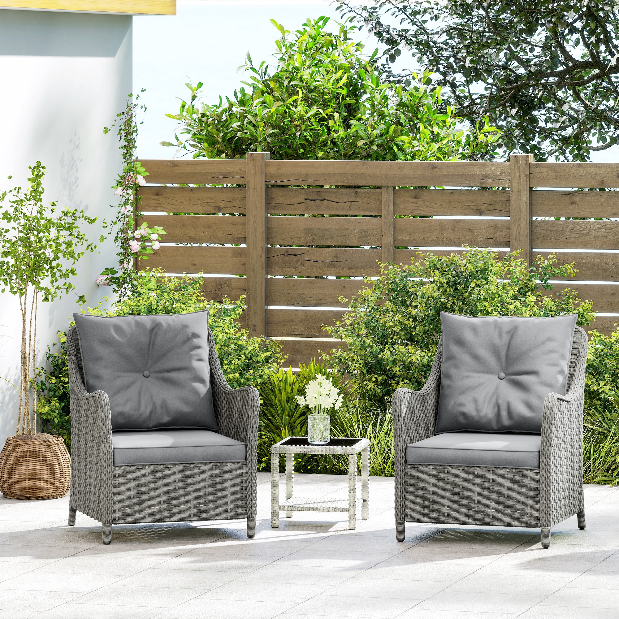 - Set of two rattan garden chairs for you to relax with company