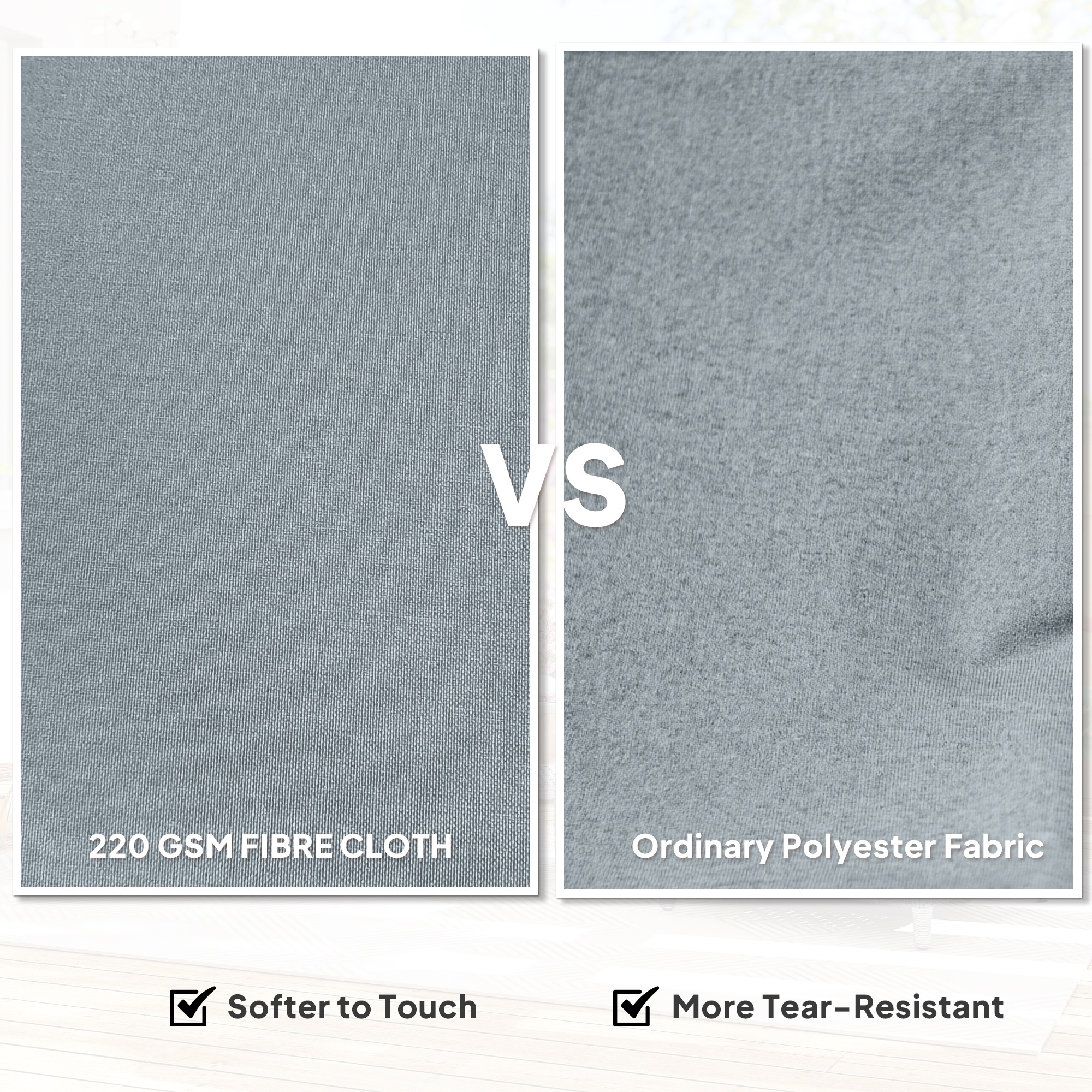 - Thick padded seat and back cushions covered with softer 220 gsm fibre cloth