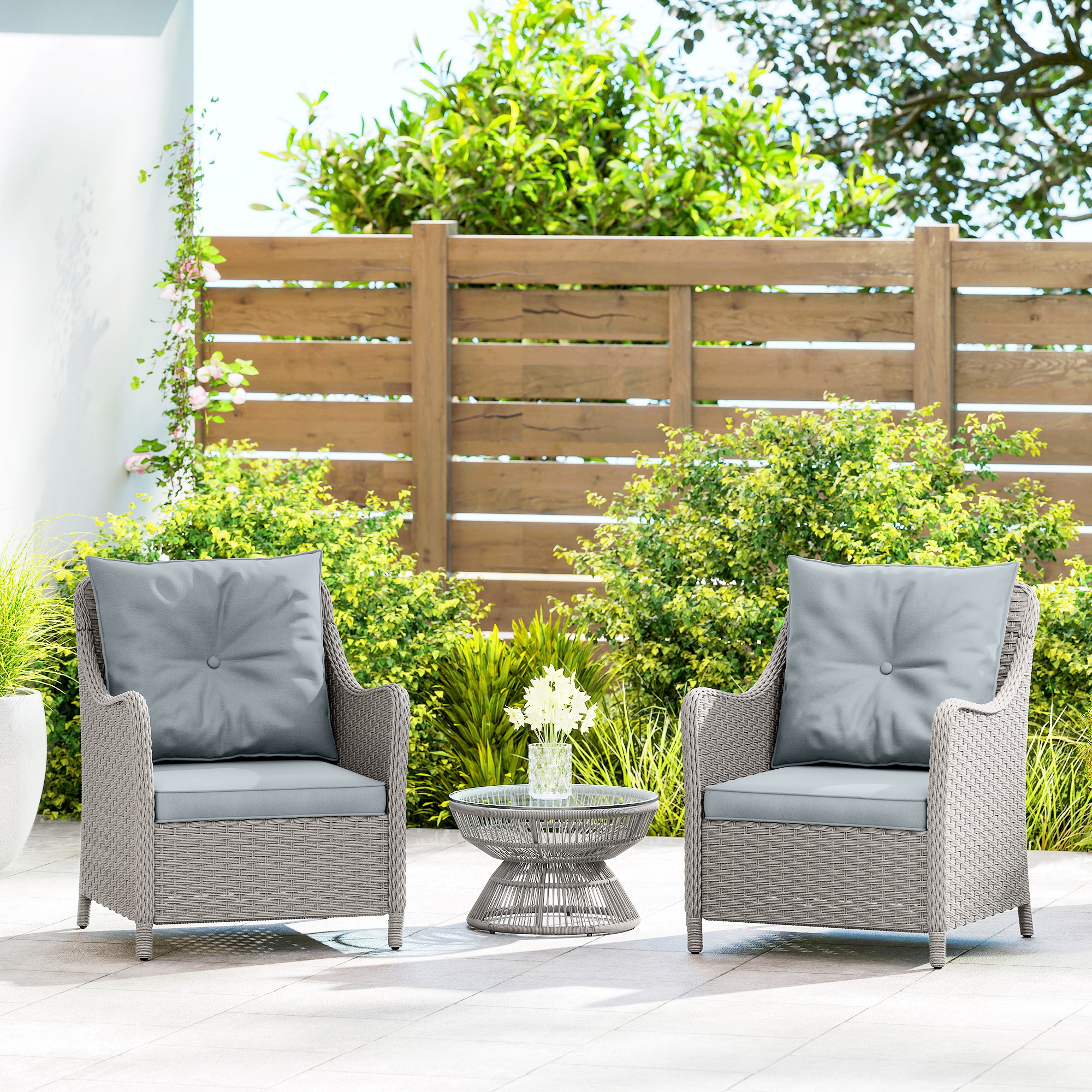 - Set of two rattan garden chairs for you to relax with company