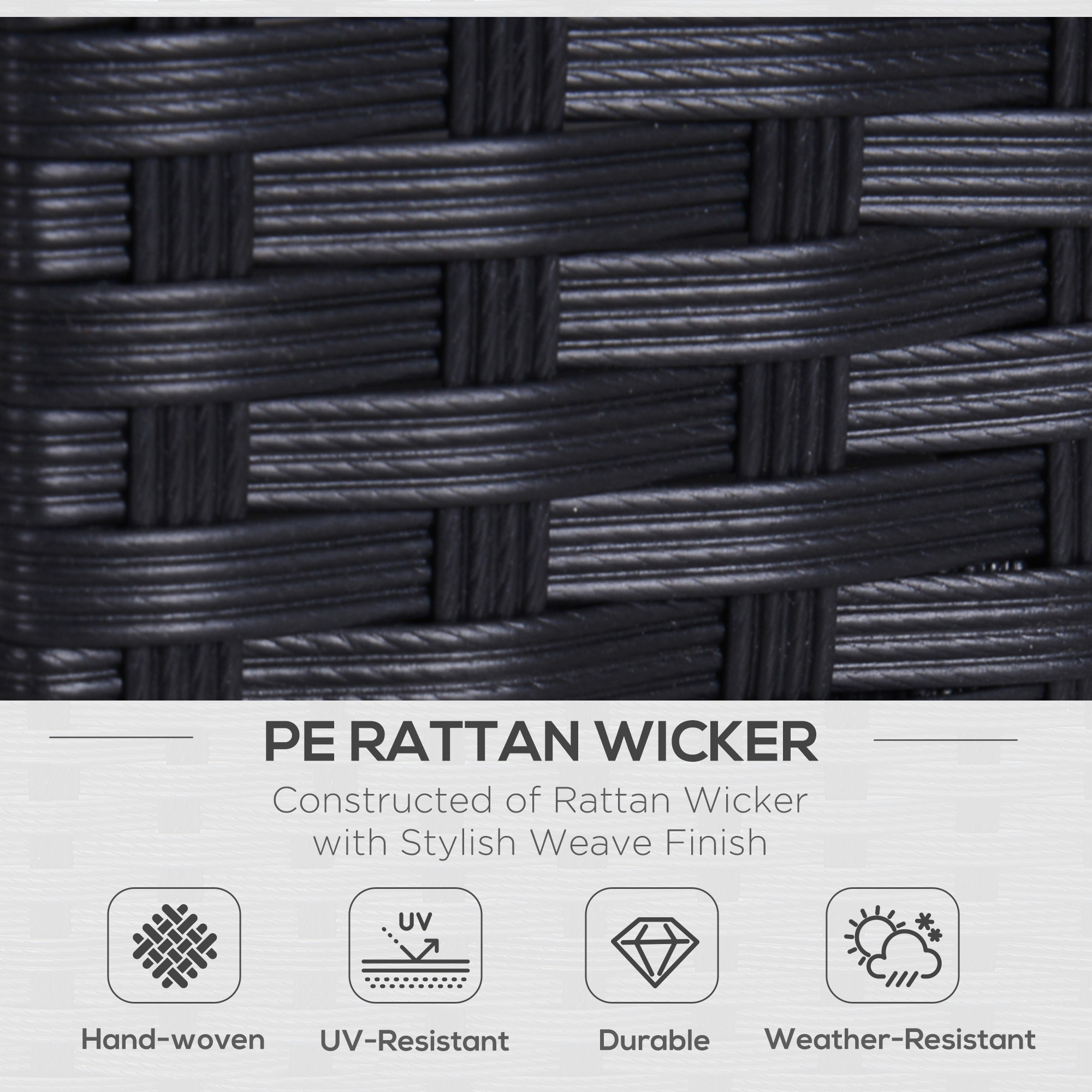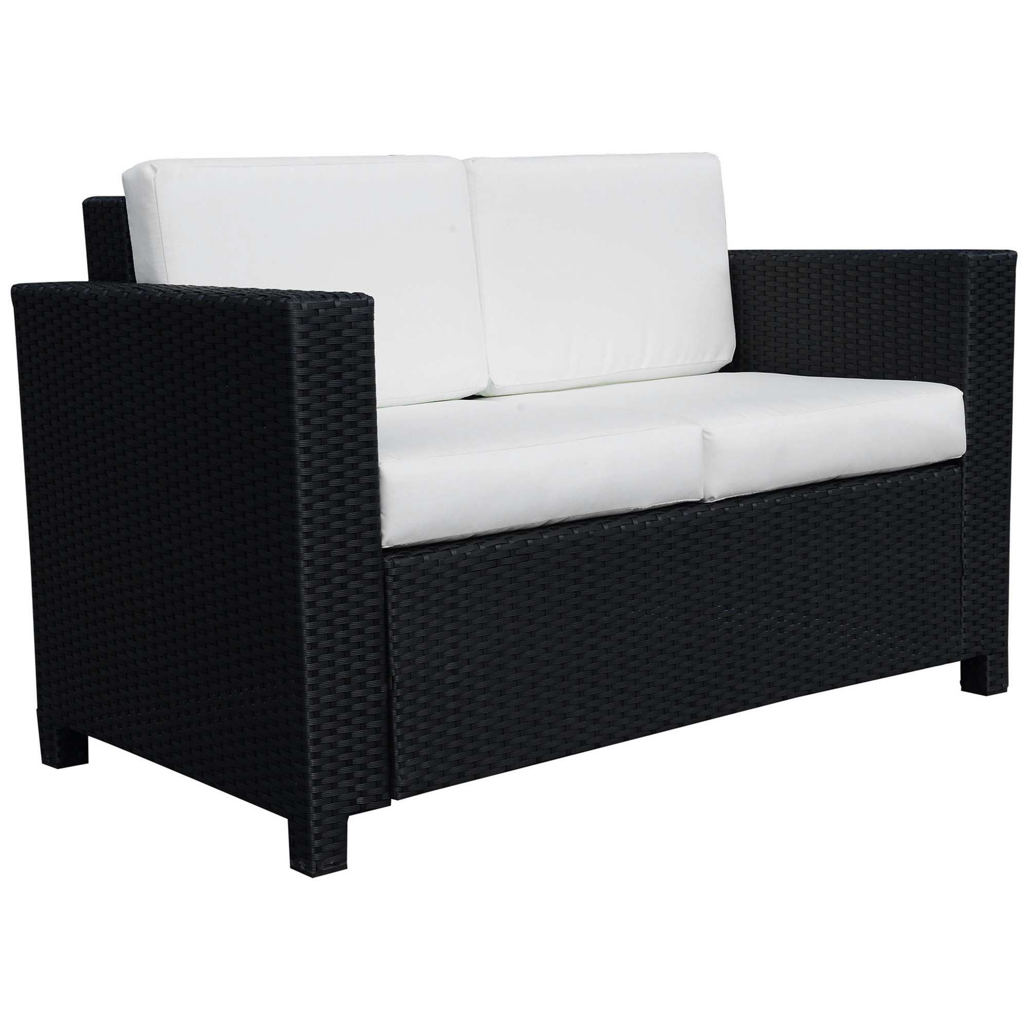 Brighten your garden with the Outsunny rattan loveseat. Made of steel frame to prevent rust and damage outdoors, wrapped in rattan for easy cleaning and is a mainstay in your garden furniture. Come with thick padded and plush cushions, as well as being water-resistant and having washable covers, with a high back and armrests for plenty of support, this outdoor couch is a great way for two persons to sit back and relax in the sun.
