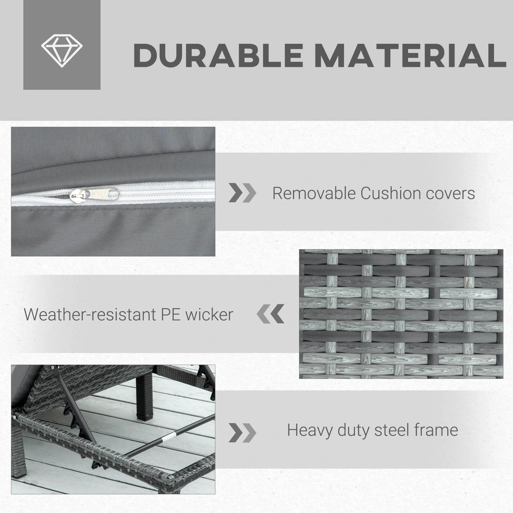 Lounge in luxury, whether in the garden or patio outdoors - thanks to this longline sun seat from Outsunny. Formed of a powder coated metal frame, with PE wicker wrapped around: weather-resistant, durable and beautiful. The back sets to five different positions so you can chose an angle most comfortable for you. The comfortable longline seat comes with a removable cushion; the polyester cover can be washed to keep it clean. Style and comfort, blended into together.