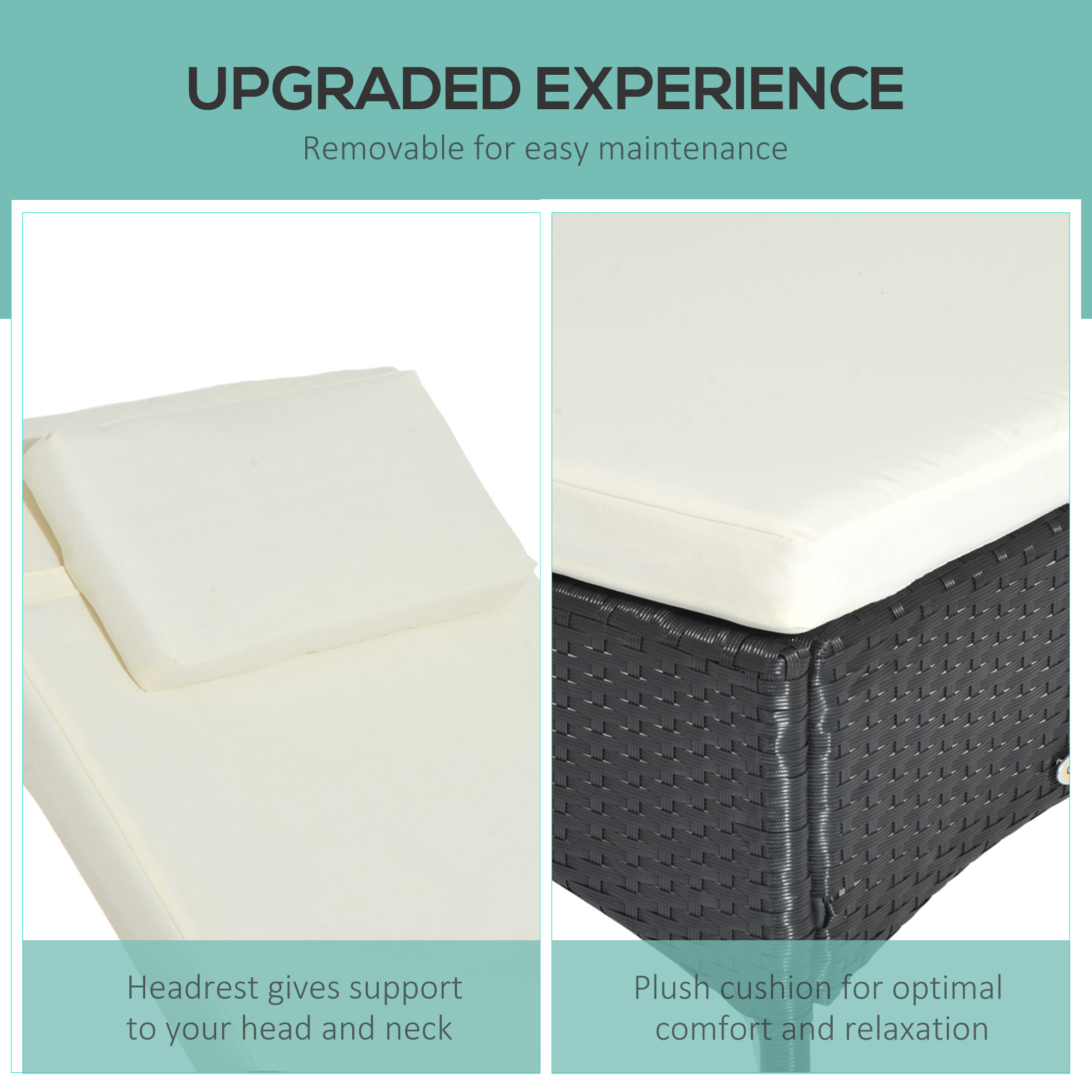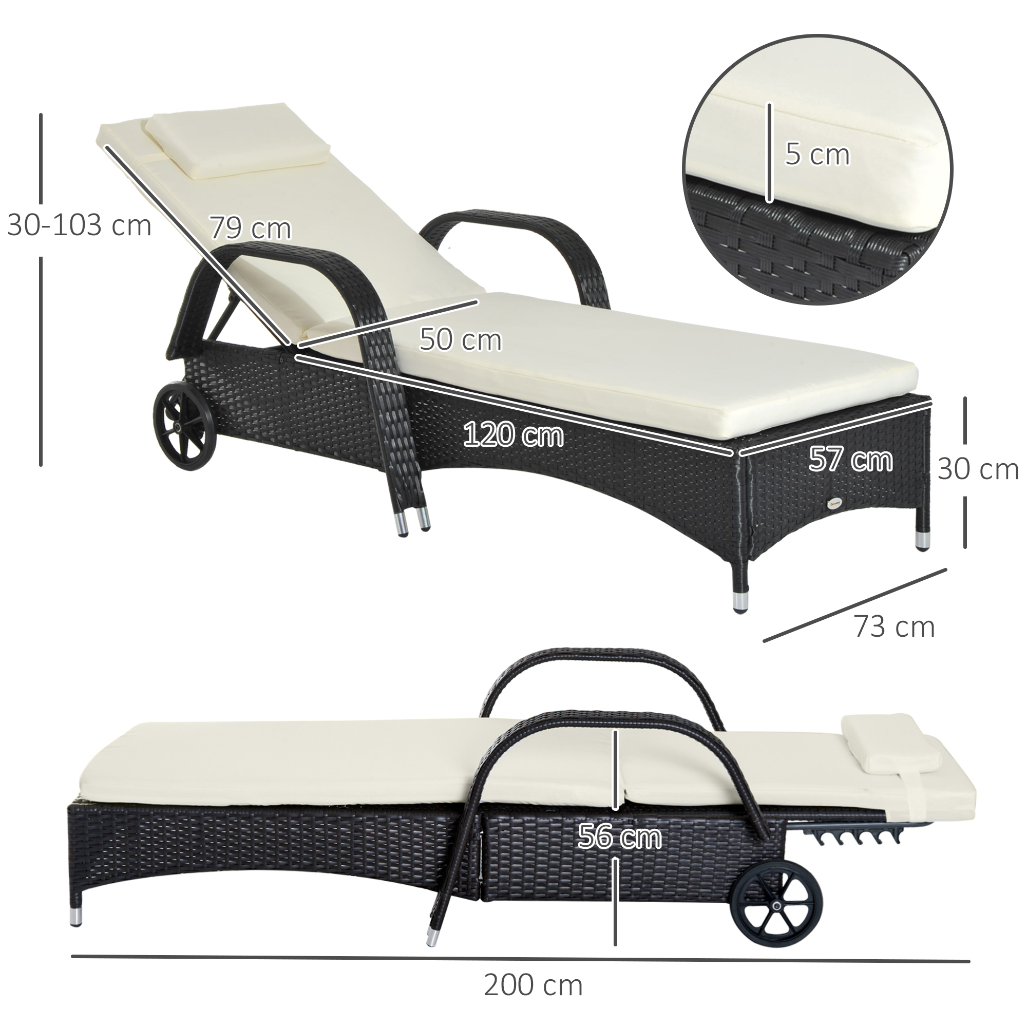 Soak up the sun with this Rattan Lounger from Outsunny. Made from weather-resistant PE wicker, with a strong steel frame underneath, the base is extremely sturdy and will provide you with many years of relaxation outside. On the top there is a thick foam cushion seat with a removable headrest for comfort and the back can be adjusted five different levels to suit your preferences. It is finished with two wheels to you can move it easily, whenever you wish.