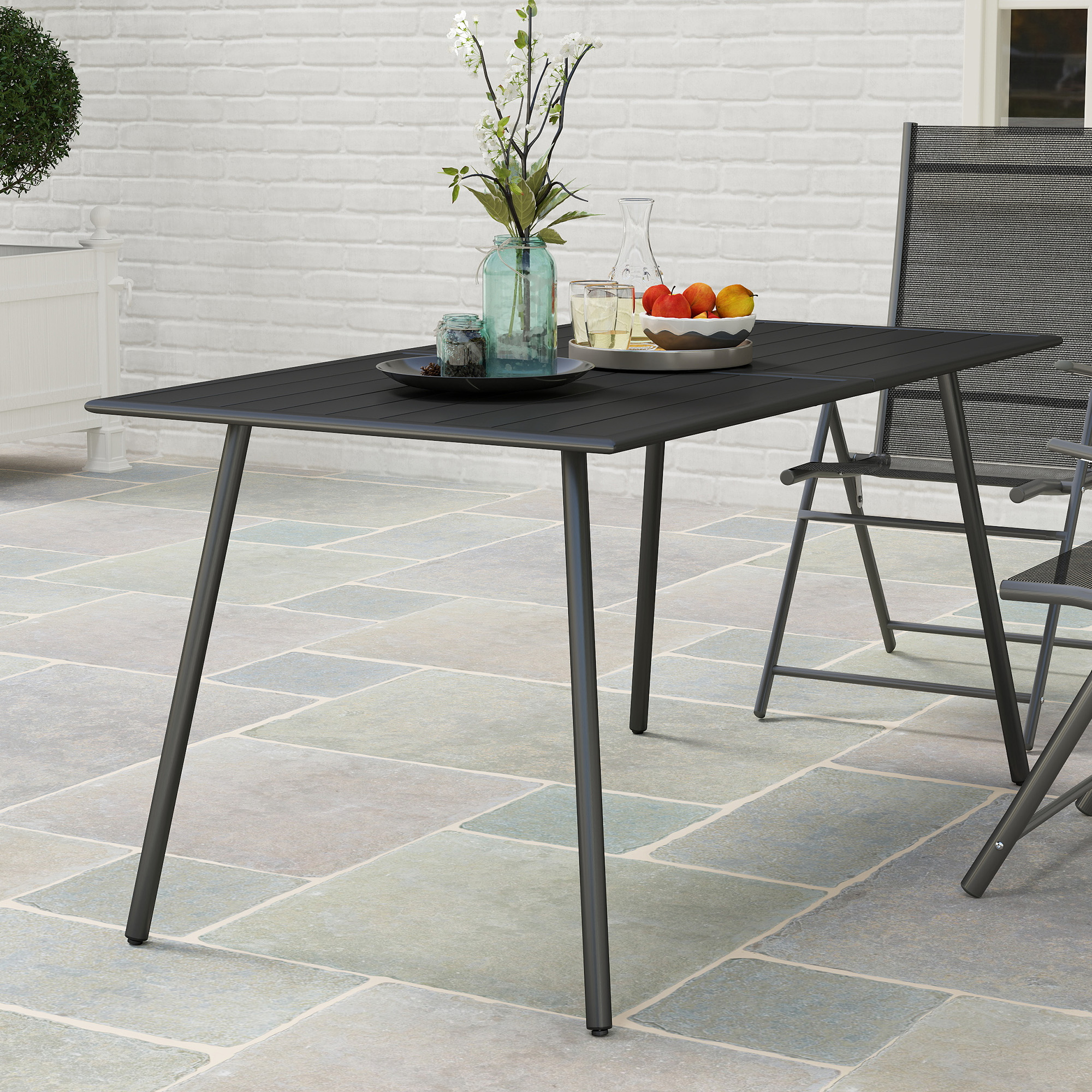 Transform your garden gatherings with the Outsunny garden table, designed to comfortably seat six. The slat-style tabletop prevents water build-up and simplifies cleaning, while the rust-proof powder-coated steel frame ensures longevity. Its chic, simple design complements any garden decor, making it a stylish addition to your patio or outdoor dining space.