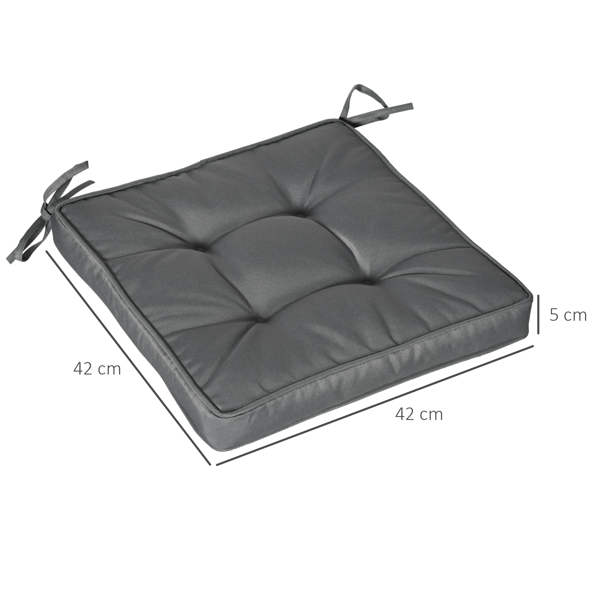 Refresh outdoor seating comfort, with this set of four garden cushions, from Outsunny. Filled with extra padding so they are firm and comfortable, with polyester covers for durability; the covers are resistant to light stains and water to keeping looking beautiful. Each cushion comes complete with two tie fastenings to hold in place.