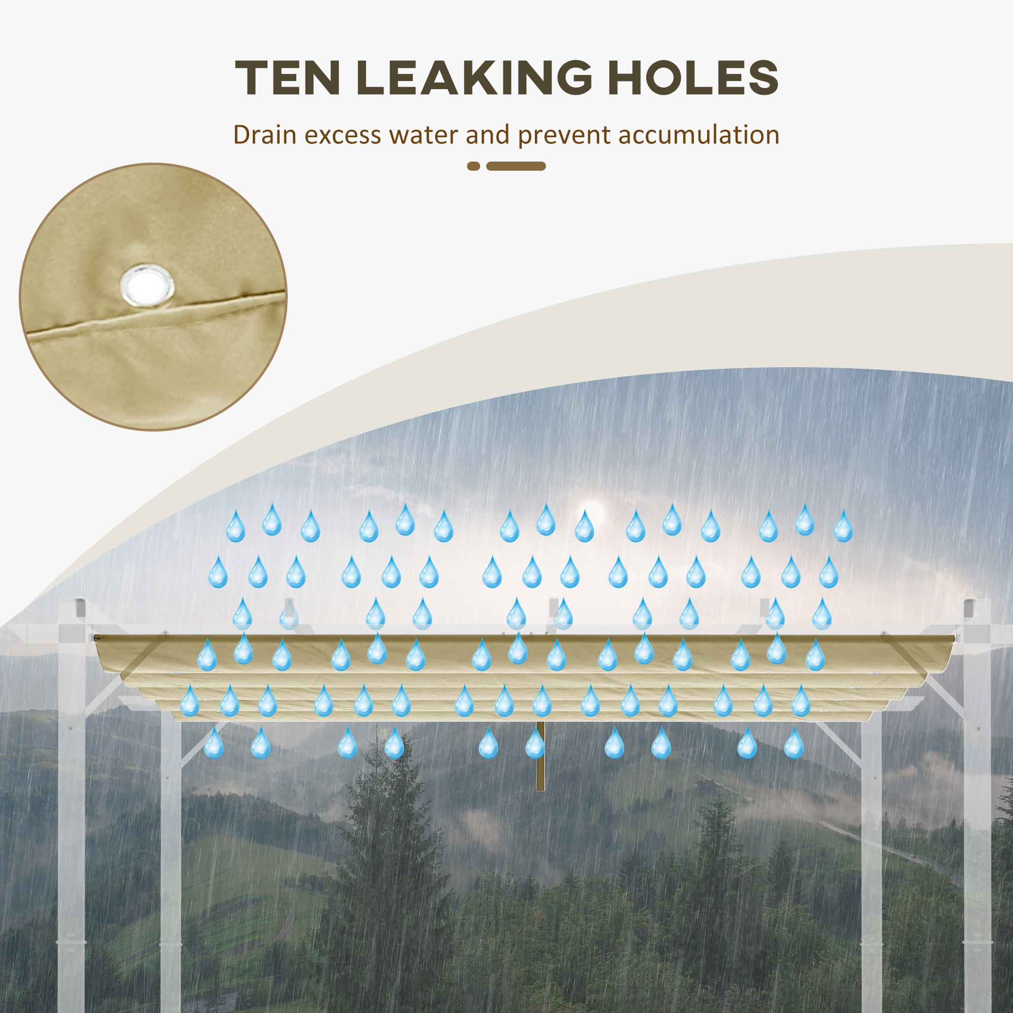 Bringing your pergola back to life is easy with this canopy replacement top from Outsunny. Made from polyester, the fabric is long-lasting for extended use, with a plastic coating for protecting against mild weathering. The holes on each end make it easy to set up and remove. Comes with drainage holes, so you don't have to worry about water build-up.