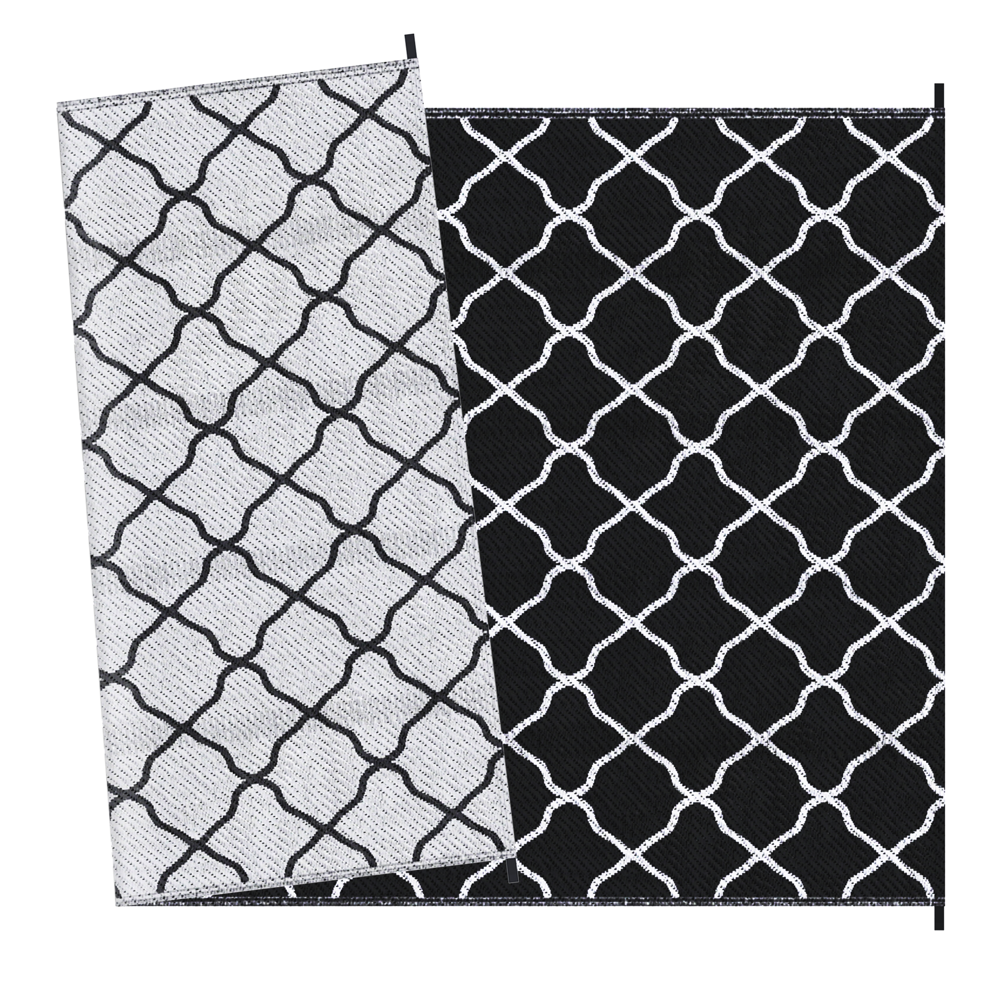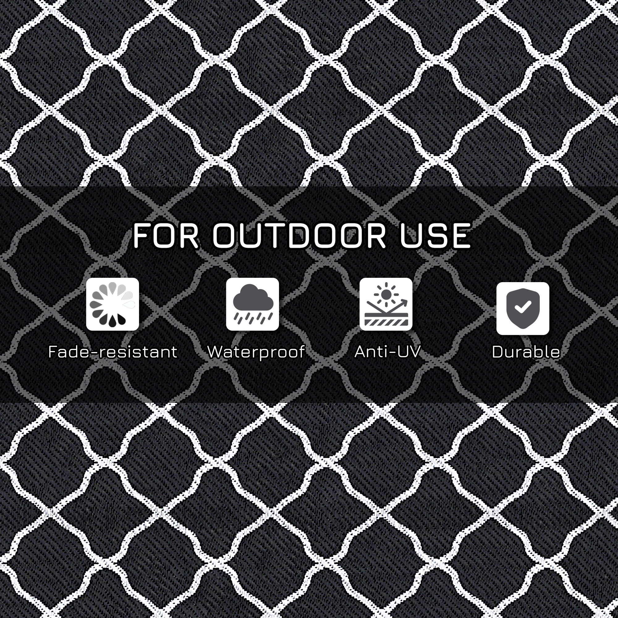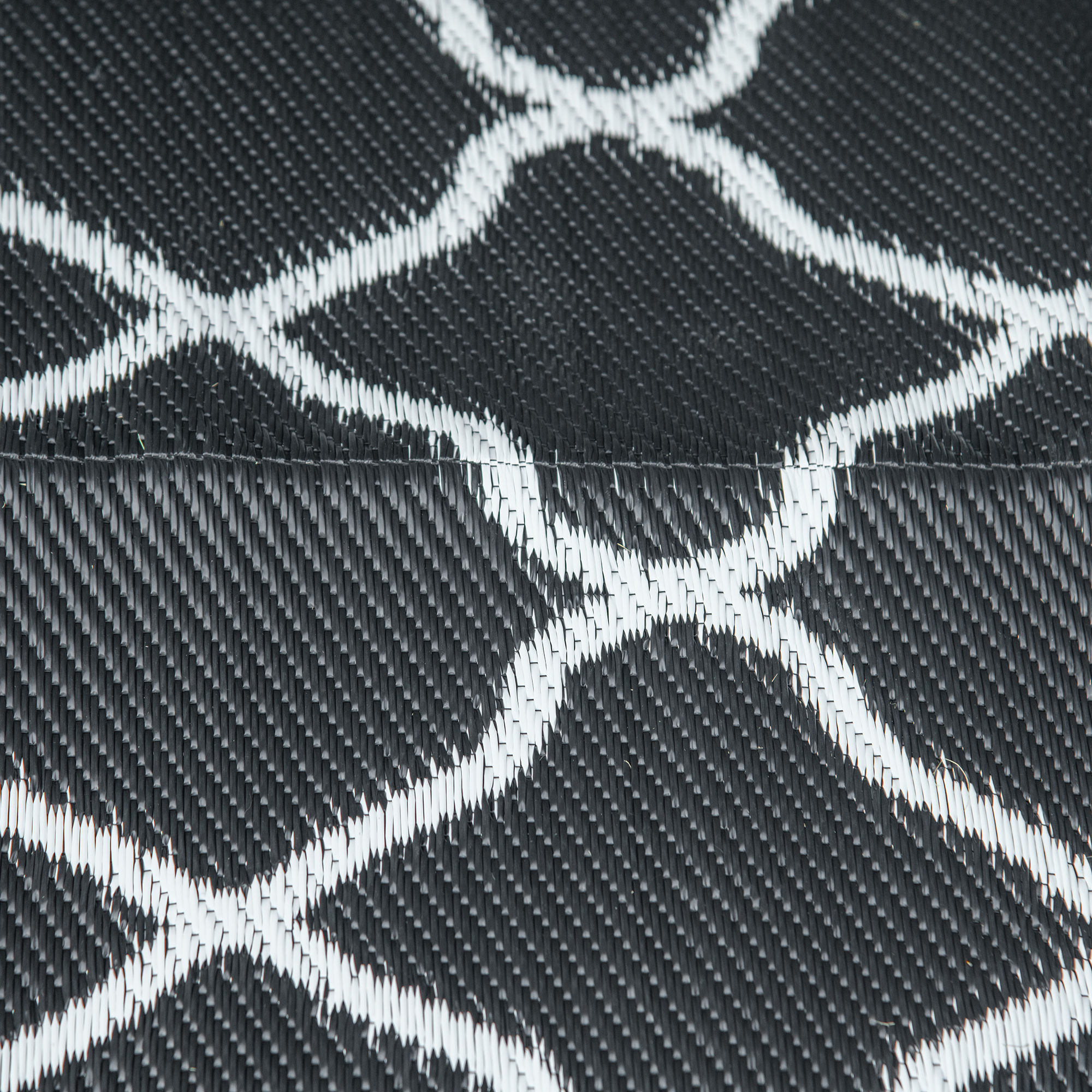 Camp on carpet with Outsunny. This porch rug is designed to handle dirt. Outdoor-ready, our rug really cleans up fast; sweep it, spray it, wipe it, or wave it; its powerful polypropylene fibers stay dry and don't saturate. Keep a plastic outdoor rug in the camper, RV, or car; it's excellent for camping, beach trips, patio picnics, or anywhere outside. The colour is reversible, meaning you can flip our plastic rug over to have a fresh side or a fresh style. Upholster the outdoors with Outsunny.