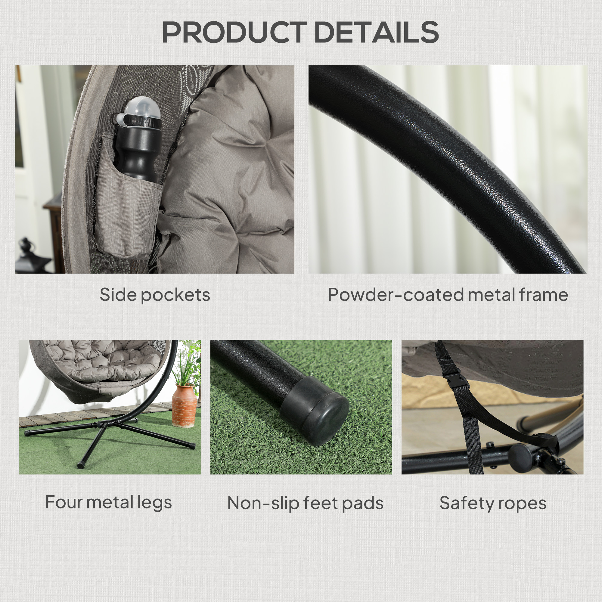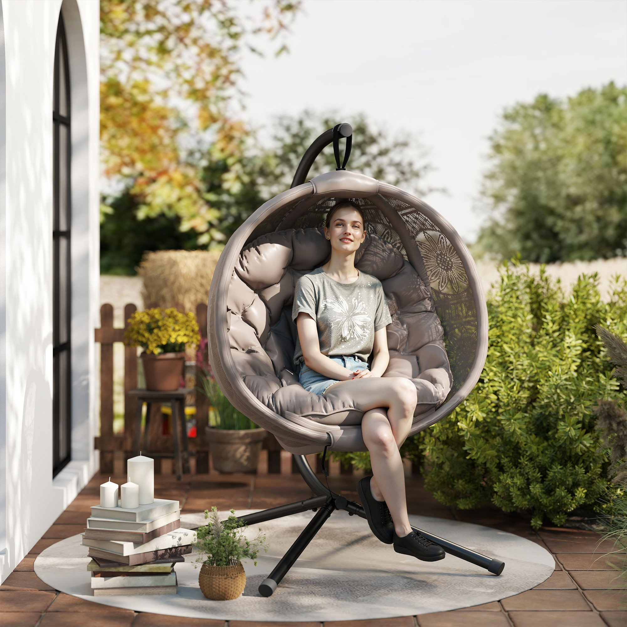 Relax in your own comfortable spot with this Outsunny hanging egg chair. Powder coated steel frame is strong, with the soft padded cushion keeping you comfortable. Now you just need to choose the right spot...
