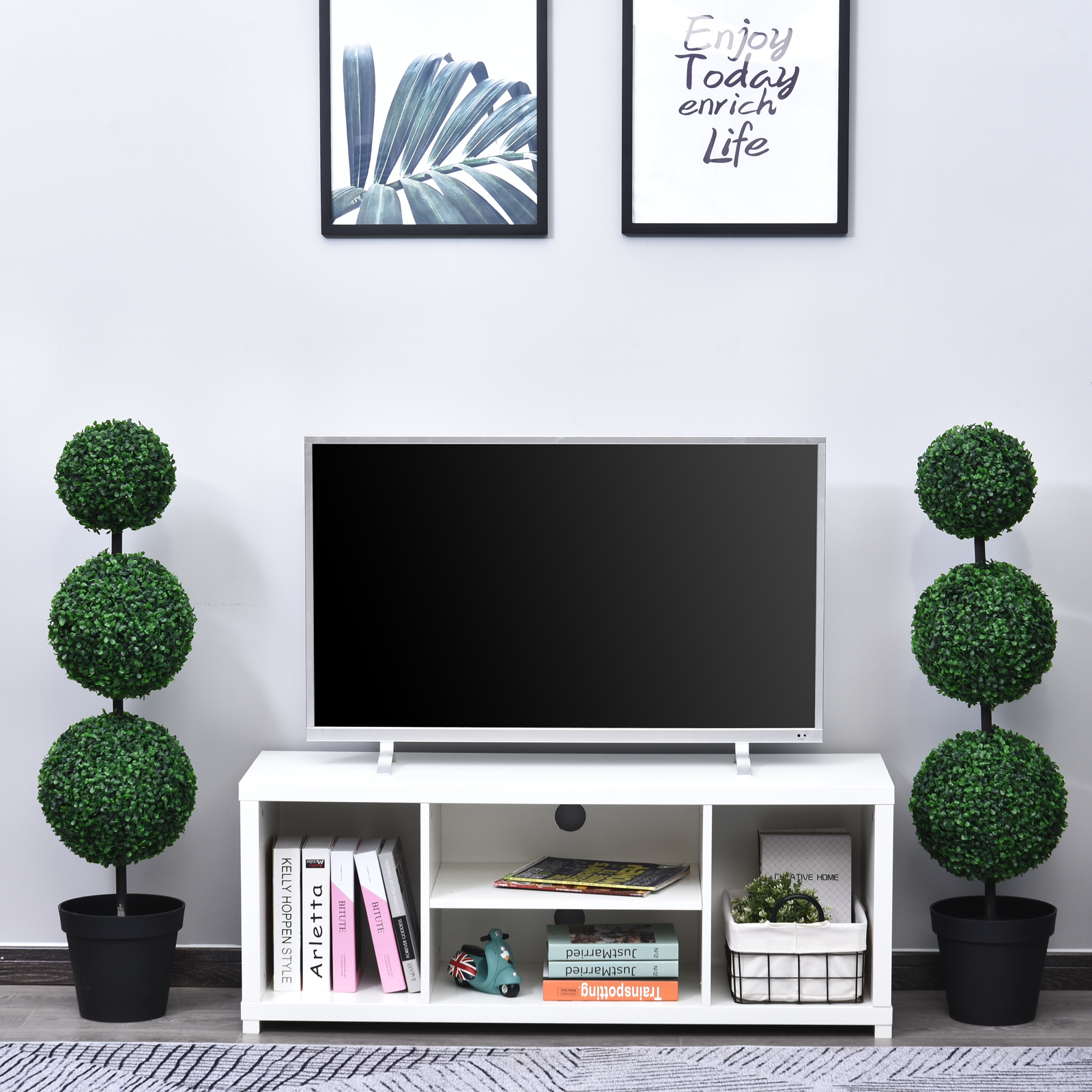 Breathe a new lease of life into your home with this potted plant from Outsunny. Sold in a set of two, each faux plant is presented in a tall, triple ball design for a unique and stand-out design that instantly brightens up your surroundings. Filled with cement each black pot keeps the indoor plant upright, with it delivered fully assembled to allow you to place it where you want straight away. The fake plant is an easy way to inject greenery into your home with no upkeep required.