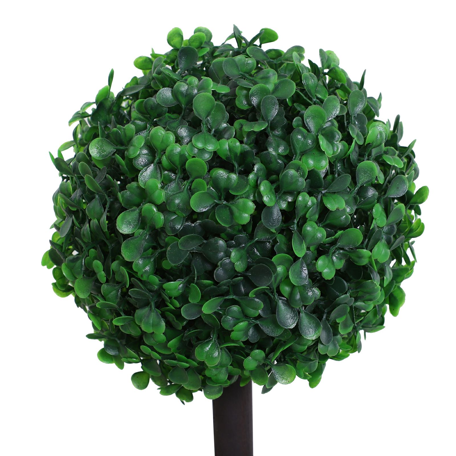 Breathe a new lease of life into your home with this potted plant from Outsunny. Sold in a set of two, each faux plant is presented in a tall, double ball design for a unique and stand-out design that instantly brightens up your surroundings. Filled with cement each black pot keeps the fake tree upright, with it delivered fully assembled to allow you to place the plastic plant where you want straight away. The easy way to inject greenery into your home with no upkeep required.