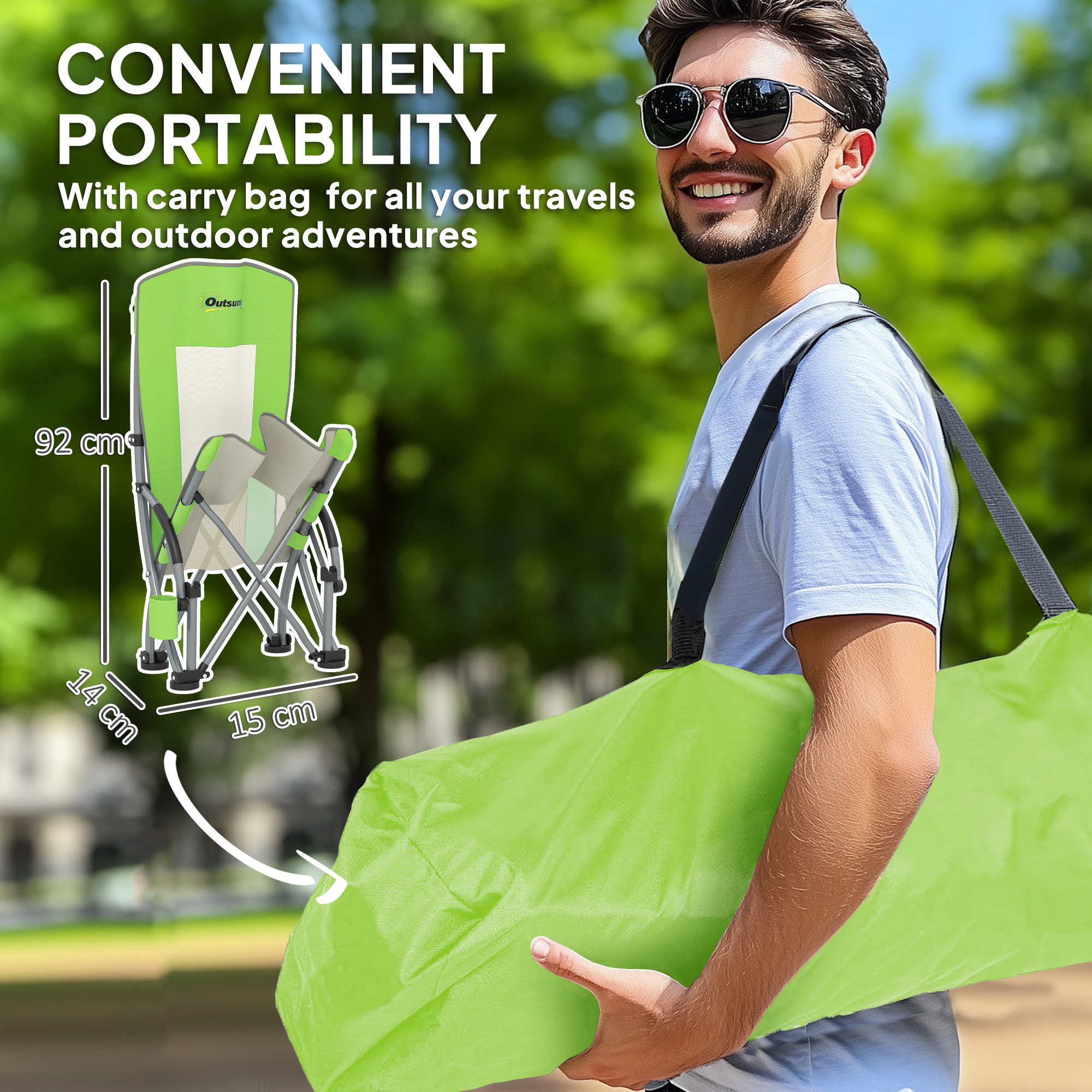 Discover the ease of outdoor relaxation with the Outsunny beach chairs set of 2. This lightweight, portable chair, weighing just 2.7kg, comes with a handy carry bag for effortless transport. Great as a folding low beach chair, it features a mesh backrest for breezy comfort and foam-padded armrests to prevent discomfort from hot metal, complete with a built-in cup holder.